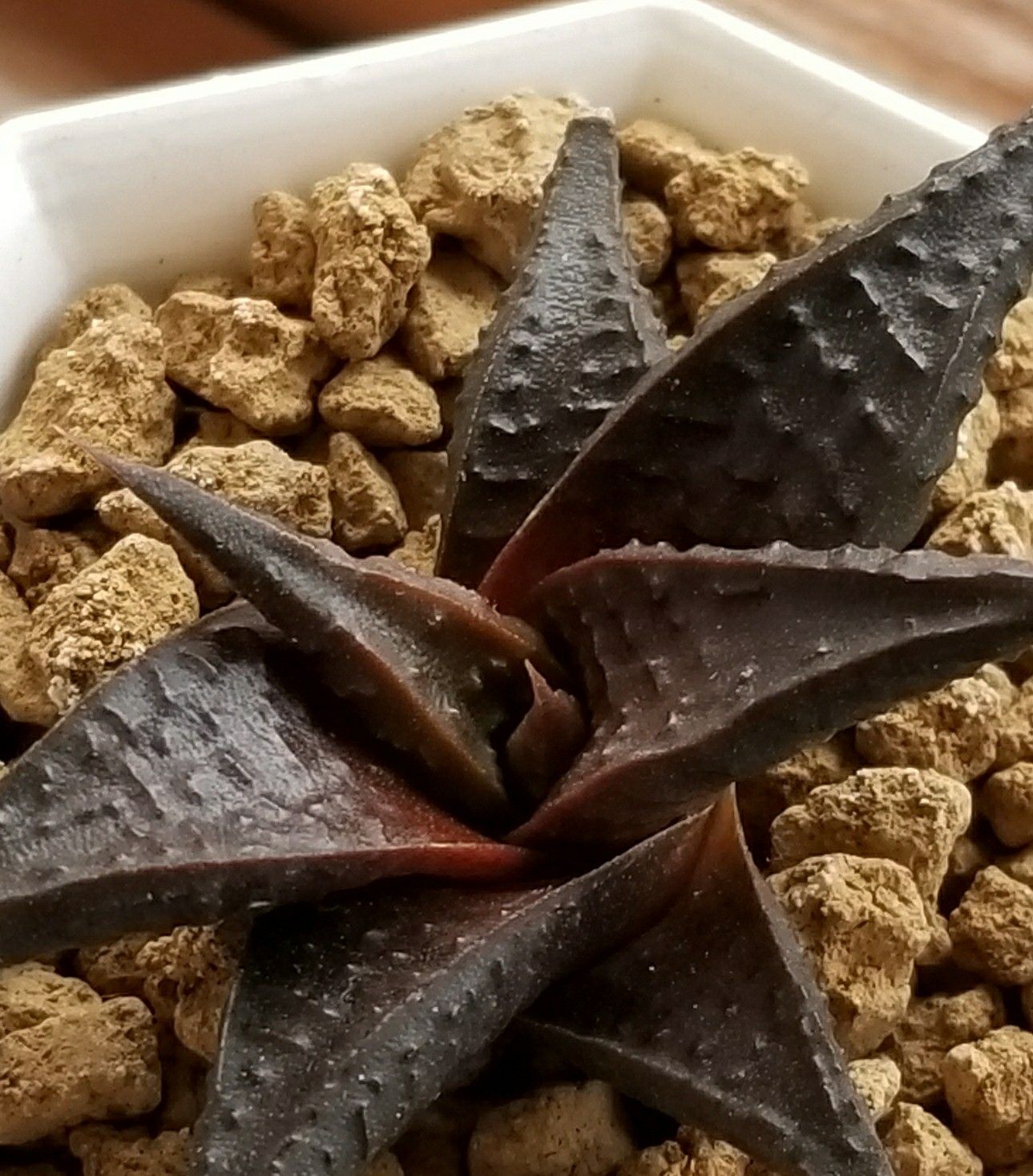 分厚い葉、ゴツゴツざらざらの質感、渋い色合い。