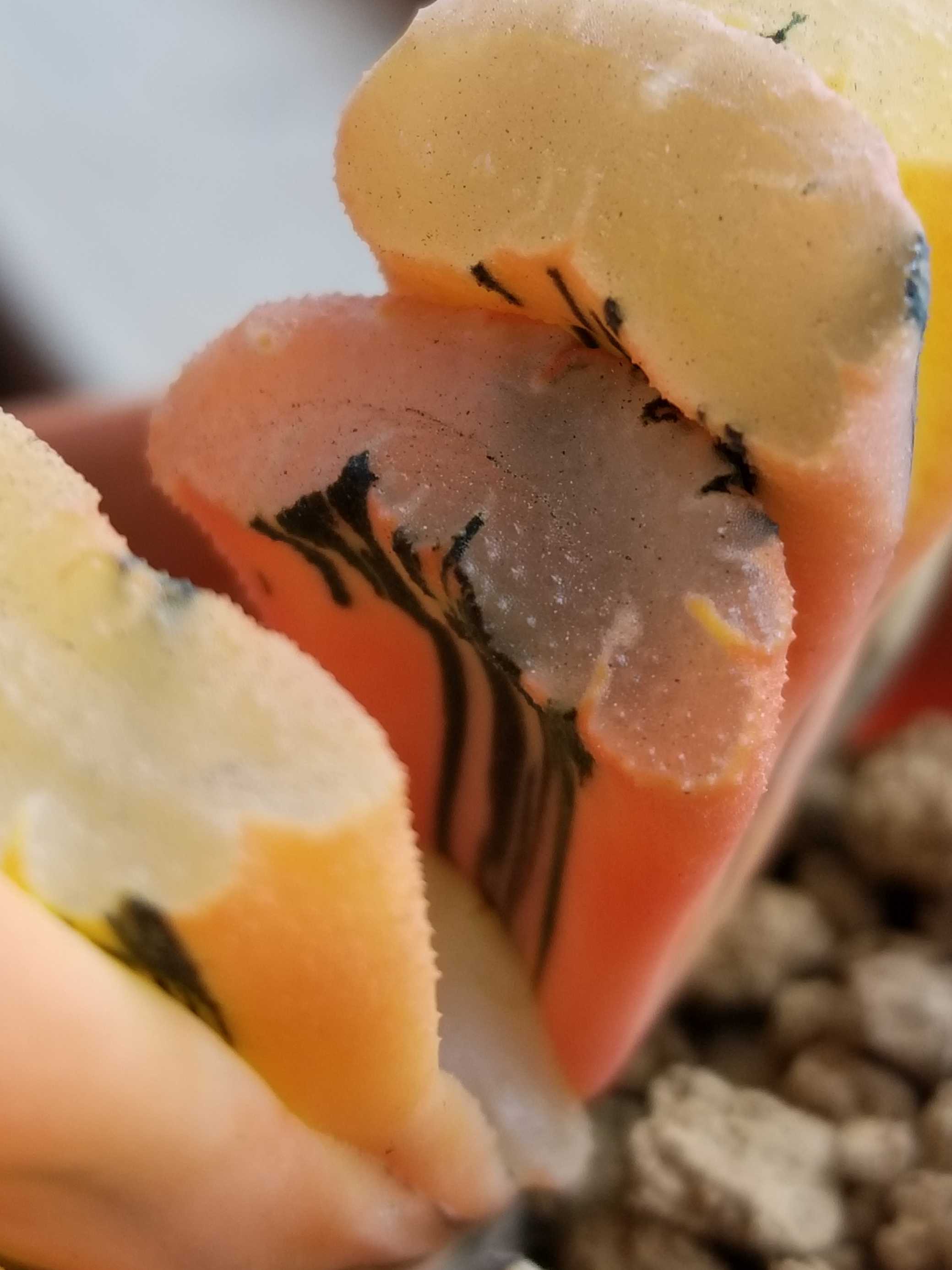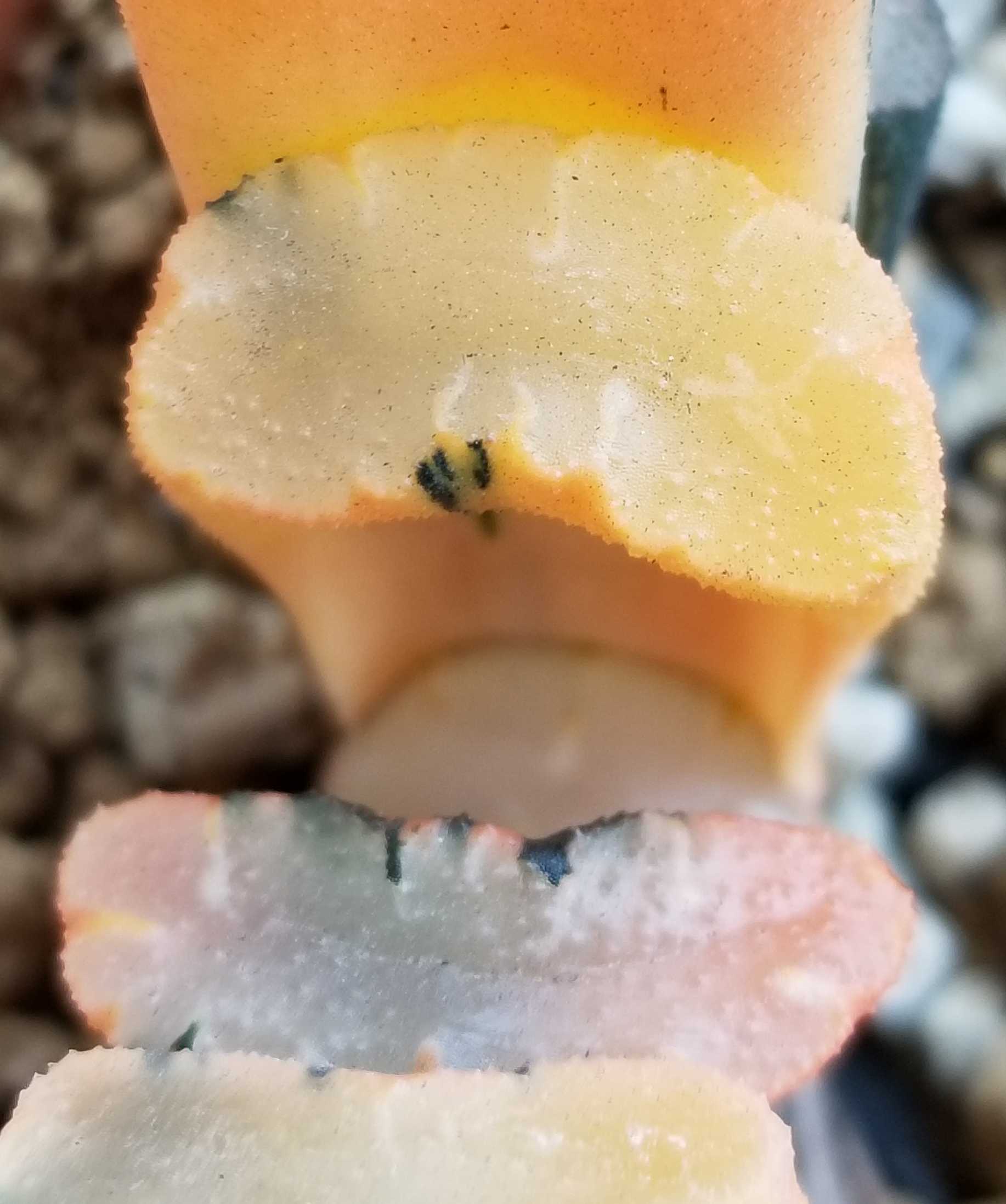 外側にいくほど色は薄くなりクリーム色へと変化するが、この真ん中のオレンジは強烈だ。