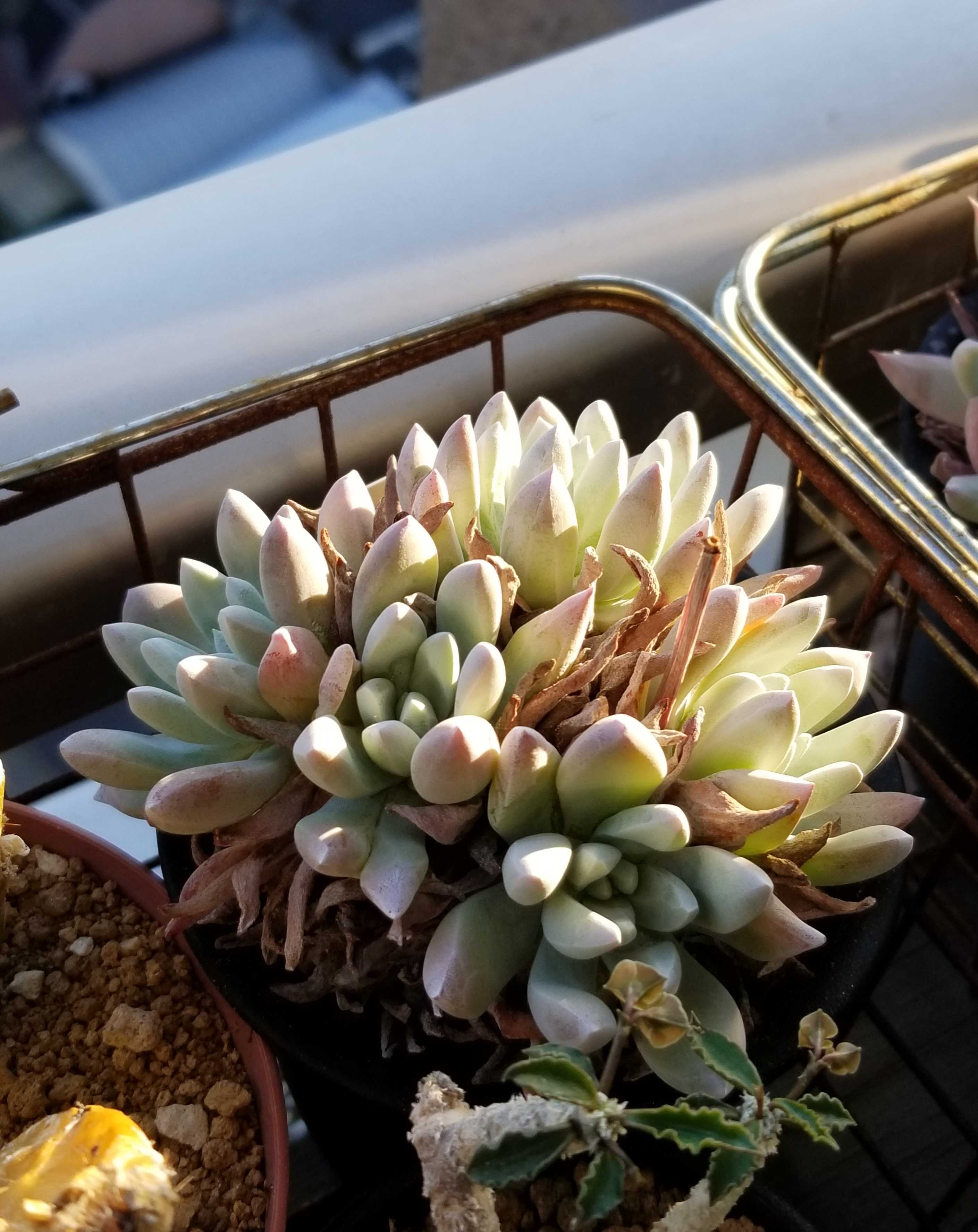 昨年同様終日日が当たらないベランダ奥の棚に置く。