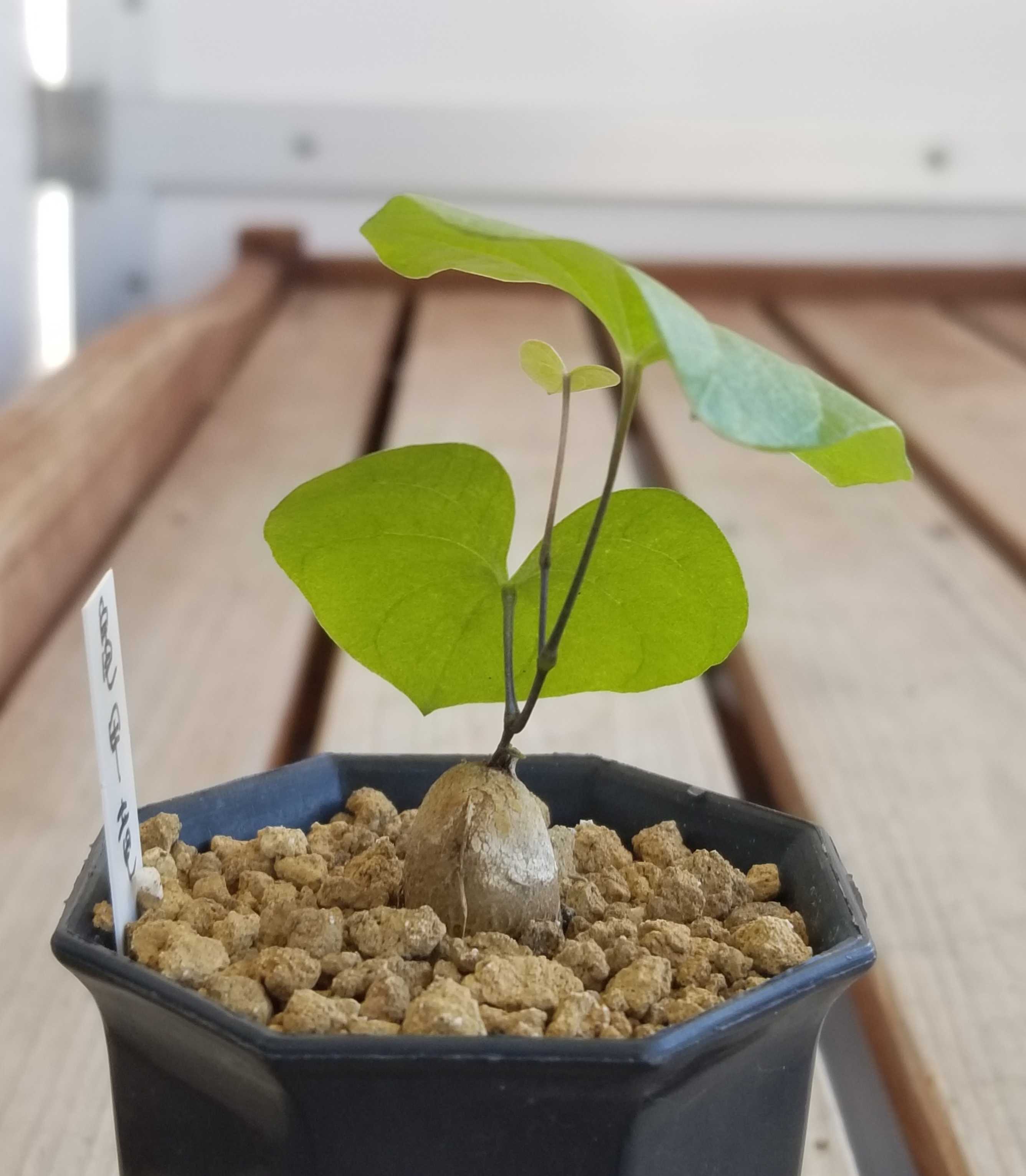 デカい亀甲竜はツルをガンガン伸ばし葉も10枚以上付くがコイツは2枚。