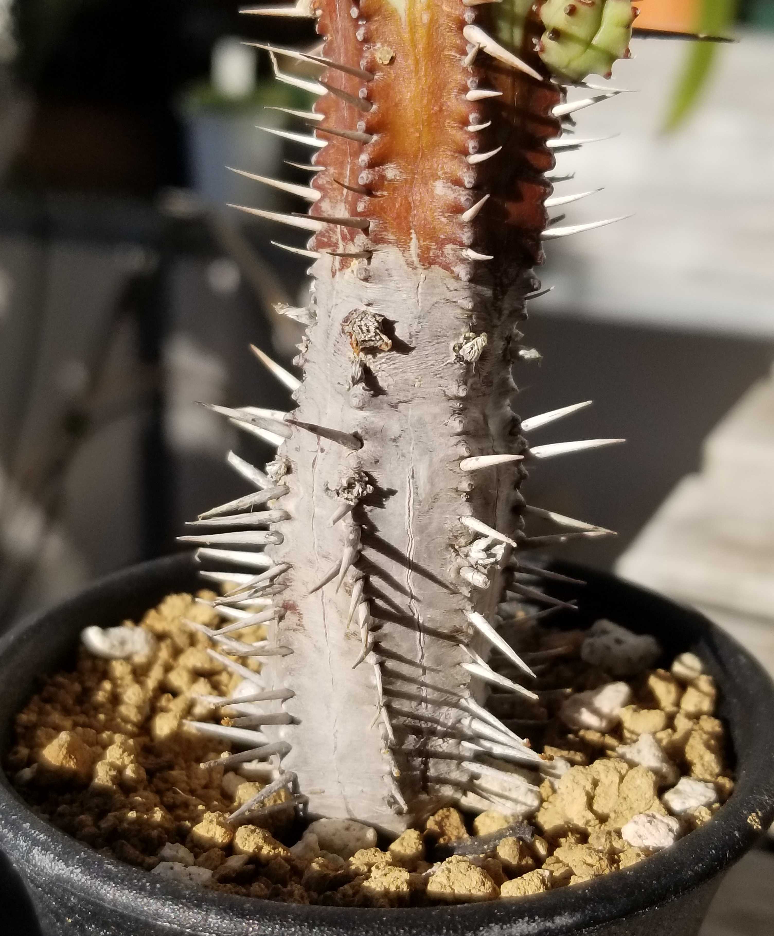 夏の間は成長を止めトゲも茶色になるコイツ。