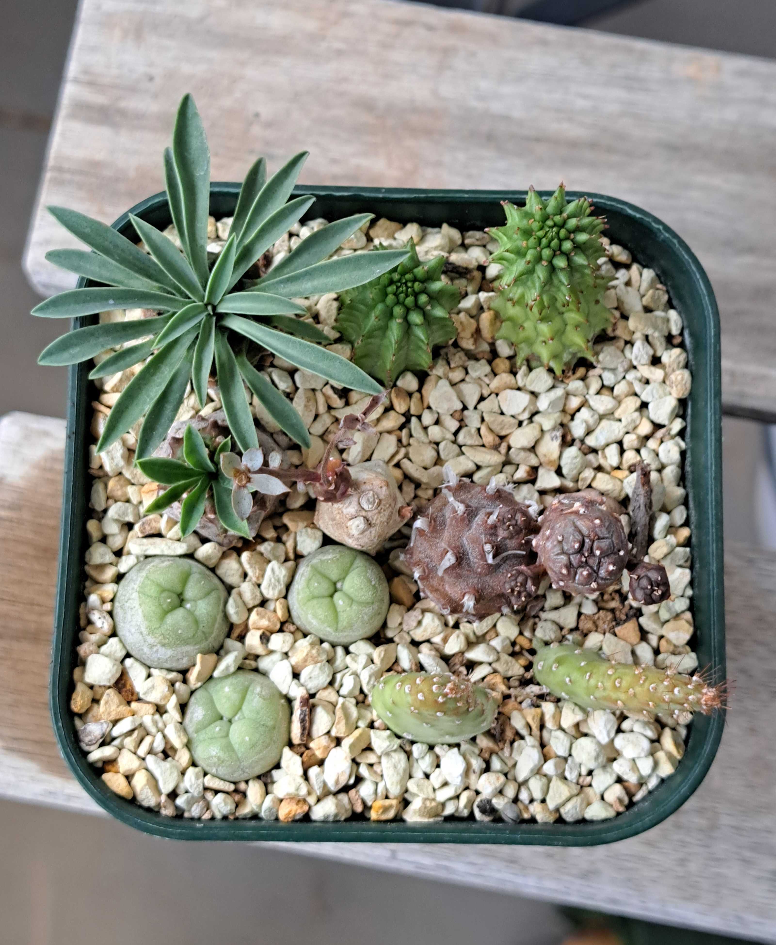 うちにあるサボテンの本には小っちゃいヤツは寄せ植えにしろと書いてある。