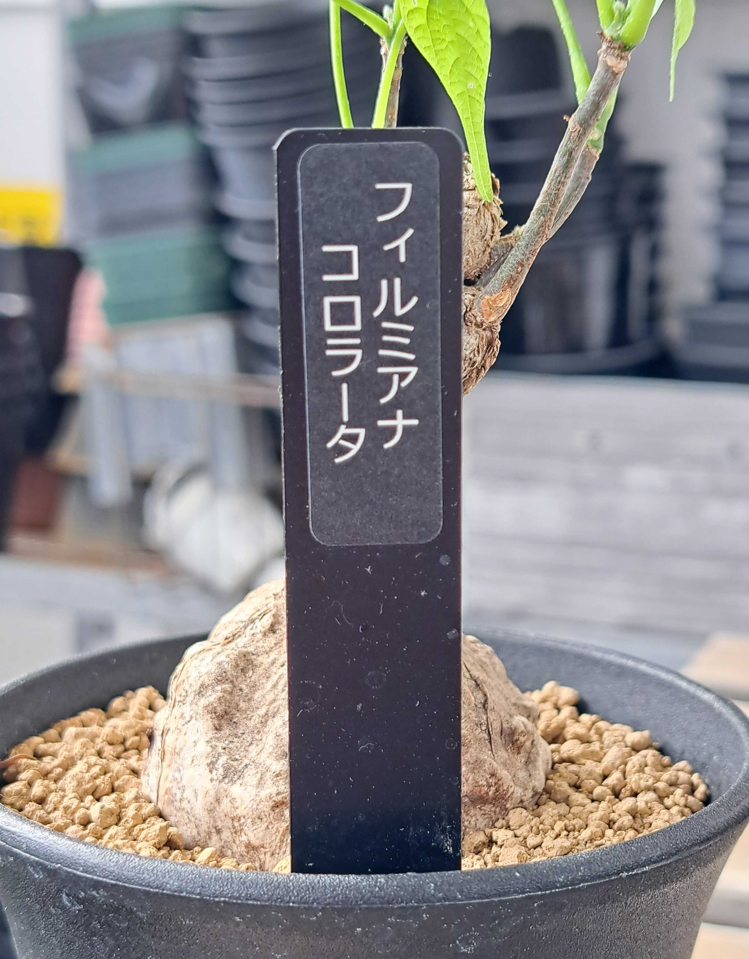 フィルミアナ・コロラータという、聞いたことあるようなないような植物を買った。カクタス長田産ではない様子。だが、同じぐらい立派で庶民でも手が届く値段。良心的なナーセリーは長田さん以外にも結構あるのかもしれない。前置きが長くなったがこれがその姿。いや立派。3号ミニラン鉢植え。いつもの2.5号よりひとまわり大きい。丸い、扁球状の塊根の上に太い茎があり、先端から葉を出す。典型的なコーデックスの形状。なぜかこれに惹かれてしまうのだ。不恰好なイモときれいな葉っぱのコントラスト、相反するものが同居する不思議さ、そういうところに魅力を感じるのだろうか。では、詳細を。まずはイモ。何はともあれイモ。う~ん。このイモもいいねえ。でっぷりと太っている。たくさんの水を蓄えているのだろう。薄茶色で若干のボコボコ感がある。何かに似ているな………ニンニクだ。葉はハート型。結構いっぱいある。なぜなら茎が4本もあるからだ。太い茎の先端部から細い茎が出て、その先に葉をつける。出たばかりの小さい葉もある。くすんだ薄茶色がここで一気にきれいな緑色に変化する。これがいいのだ。さて、ではどんな植物なのか調べてみるか。ええと…ええと…。ふむふむ、南アジア原産なのね。できるだけ日に当てるが焼ける場合は調整が必要だと。夏の水やりは乾く前にたっぷり、秋から徐々に減らし冬は断水。なるほど。ではそのように育てるとしよう。さて、どんな風に育つか。楽しみだ。観葉植物/フィルミアナ:コロラータ 3.5号硬質ポット【選べる現品発送】塊根植物 フィルミアナ コロラータ 陶器鉢 3~4号サイズ 高さ約30〜40cm 希少 超レア 南アジア産のコーデックス Firmiana colorata ハート型の葉っぱ コーデックスプランツ アオギリ科フィルミアナ属 観葉植物フィルミアナ(コロラータ) 5寸 プラスチック鉢 1鉢 塊根植物 コーデックス フィルミアナコロラータ Firmiana colorata【現品】フィルミアナ・コロラータ 5号 緑鉢【選べる観葉植物】【観葉植物/インテリア/おしゃれ/ナチュラル/鉢植え/贈り物/楽天/通販/スモールサイズ/グリーン/珍奇植物/コーデックス/塊根植物/数量限定】
