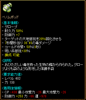 ・手順1:ベノムポッド+愛のオーラ(ギルド旗なし)で「ヘッジャーヘッジング」を使い、そのダメージを記録する。