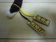 無事に届きました。うとちん、ありがと (*´ェ`*) oz131さんグッジョブ (`・ー・)b昨日、画像で見た時、さるこ木札は 「さるお色の紐だ!」 と偶然を喜びました。実は意図的に選んでくれた色だったんですね (*´ェ`*)心憎い演出に感謝感謝、大事にします☆小さんのイメージは黄レンジャーですか (*´ェ`*)?正解 (`・ー・)b