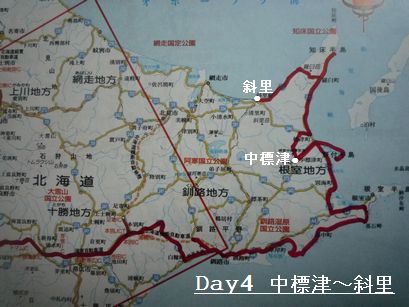【9/03 (Day4)】06:30 朝食。4000円で朝晩ちゃんとしたお弁当と温泉付、ありがたいね08:00 中標津出発。北海道を旅するライダーの聖地 「開陽台」 へ。標高271m、ぐるり330度のパノラマ、地球が丸く見える展望台。北海道遺産 「根釧台地の格子状防風林」 を一望できま…せんね。 開陽台をでてすぐ、ミルクロード 北19号道路をのんびりと。牧場を割って延びる長い、長~い直線道路。地平線まで続く直線とアップダウンが爽快、北海道にはこんな道がいっぱい☆知床半島・羅臼を一旦素通りし、セセキ温泉へ。 干潮時のみ海岸に出現し、海から温泉が湧き出るワイルドな秘湯です。潮が満ちてくると、波をかぶり海中に沈んぢゃう。北の国からで、純がトドと入った温泉です。セセキ温泉より少し先に相泊温泉があり、そこで道が終わります。お高い観光船以外、知床半島の先端まで行く手段はありません。羅臼まで同じ道を戻り、羅臼国後展望塔にのぼります。羅臼の港を見下ろす高台に展望台があり、北方領土の国後島や羅臼岳を見渡せます。(見えなかったけど…)北の国からで、結ちゃんが働いていた羅臼漁港が眼下に見えました。北の国からで使われた純の番屋で昼食を。 ちなみにさるこさんは、筋金入りの北の国からマニアです羅臼から、知床横断道路で知床峠へ、標高738m。 目の前に羅臼岳、遠くに見えるはずの国後島は拝めずがっかり。気を取り直して、知床五湖へGOGO原生林に囲まれた5つの湖です。一湖と知床連山を一望できる高架木道と、5湖全部まわれる遊歩道があります。知床五湖はヒグマの生息地なので、おじゃまする気持ちで入らなければいけません。ヒグマが出た場合、森の遊歩道は閉鎖するため、三湖~五湖へは行けなくなる日も多いとか。ちょうどこの日の午前中、四湖付近でヒグマが出没したそう。調査団が調査した結果、閉鎖は見送ったそう。ダイジョブ?ヒグマに遭遇しないための、またヒグマに遭遇した場合のレクチャーを受けてから、いざ森へ。五湖から順番に、高架木道のある一湖まで散策。【五湖】 【四湖】 【三湖】 【二湖】 【一湖】【高架木道】 この高架木道は周辺にヒグマが出没した場合でも、唯一歩ける道。地面から高くなっており、クマ避けに電流が流れてるので安心。高架木道からは、一湖しか眺めることはできませんが。運動したあとは、自分にご褒美R334でウトロを経由。ゴジラ岩☆ファイト~! イッパ~ツ!! のCMでもおなじみ。日本の滝100選のオシンコシンの滝。 岩肌に広がって流れ落ちる様は優美でした。斜里方面へ。知床半島の付け根、斜里の高台から続く約30キロの直線 「天に続く道」 アップダウンしてる直線が北海道らしさを体感できます。16:30 斜里温泉 湯元館 着。地下1000mより湧出する源泉を動力揚湯で利用しているそう。成分総計1968mgの含食塩重曹泉ですが、ただの含食塩重曹泉ではなく、植物性モール温泉☆苔のような浮遊物は植物性有機物で、湯上りはスベスベ♪ 1250円で夕食を付けたら、すざましい量のしゃぶしゃぶが用意されていました。豚・羊・鶏がてんこ盛り。お肉もりもり、お酒ガブガブ、小さんと大はしゃぎ。でっぱったお腹を抱え、夜な夜な繰り返し温泉に浸かる。極楽浄土この時はまだ、悪夢が迫りつつあることに気付くわけもなく…能天気に斜里の夜を堪能していました。Day5 に続く…