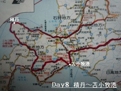 【9/07 (Day8)】雨風に弄ばれ、とうとう風邪をひきました。風邪なんて何年ぶりだろか?前の晩から熱がでてフラフラ…、食欲もなく朝食は全部小さんのもとへスルー。08:30 予定をけずり、洞爺湖と支笏湖にチラッと立ち寄るだけで、一気に苫小牧港を目指すことに。道東・道北で100%だったピースサイン率は、札幌・小樽・余市・ニセコあたりではあまり…なんだか淋しいね。ニセコを越え、倶知安町に入ったあたりでトイレ休憩。何気なく入った公園でしたが、なんと!! ゆるくないレルヒさんがいました あの新潟のゆるキャラと違って、羊蹄山をバックに雄々しい姿かれこれ15年近く、お世話になっている美容師さんから、出発前に言われました。北海道に行くなら、ぜひ洞爺湖にと。 どうやら、最近映画で見た洞爺湖の美しさに、それはそれは感動したそうで。必ず行ってきてくれと、強要されました(笑)【映画・しあわせのパン】洞爺湖の真ん中にある中島は、パワースポットとしても有名。北海道の富士山と言われる羊蹄山から流れる強いエネルギーが、洞爺湖に降り注ぐようで。中島へ渡る遊覧船では、観音島を通り過ぎる辺りで、ガラッと気が強くなるんだとか。遊覧船、乗りたかったなァ。そのかわり…、顔と戯れる。支笏湖へ。最大水深は363m,田沢湖に次いで日本で2番目に深い湖。冬でも凍らない日本最北の不凍湖。湖周辺は、とってもキレイに整備されており、いい感じのお店がいっぱい想像以上の充実ぶりに、うれしい誤算でしたー新しくできたお店 「メメール」 でランチを☆ さるこさんは 「鹿肉のハンバーグ」 を、小さんは 「ビーフシチュー」 を頂きました。口の中でホロッととろけるお肉は絶品でした 湖畔に建つお洒落なホテル 「しこつ湖鶴雅リゾートスパ 水の歌」。このホテル内にあるスイーツ店 「パティシエ・ラボ」 が人気のようで混雑…。 食後のデザートに、定番 「たるまえ山シュー」 を頂きました。中にとろ~りとしたクリームがめいっぱい。ああ、しあわせww16:00 苫小牧港着。まだ出港3時間前ですが、すでにたくさんのバイクが集結。 19:00 出港。 ばいばい、北海道【9/8 (Day9)】10:00 仙台港着、高速で一気にワープ!!14:00 無事、帰宅。【ツーリングデータ】9日間(道内7日間) 船舶利用: 仙台 ⇔ 苫小牧 S寝台+二輪 往復19,800yen(早割50%OFF)走行距離: 2,805km(道内2,308km)高速利用: 557km/6,300yenPS号給油: 90.05L/14,244yen燃費: 31.09km/LForza号給油: 75.18L/11,936yen燃費: 37.24km/L色々色々色々ありましたが…五感で感じる全てが圧倒的なスケールの北海道でした。特異な地ゆえの天候に翻弄され、訪れることが叶わなかった場所もたくさんありましたが…。これはこれで次回のお楽しみができた、ということでよしとします。北海道、最高のステージでしたおわりww