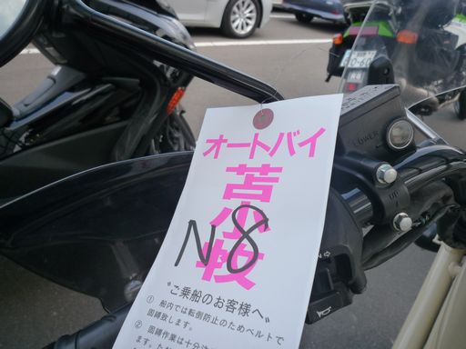 【8/31 (Day1)】09:30 出発,寄り道しながら下道でトコトコ250km。16:30 仙台港に早めの到着。今回は、太平洋フェリーで苫小牧港まで。太平洋フェリーは、「いしかり」 「きたかみ」 「きそ」 と、計3隻の船が運行。日にち・運行経路により船が変わるので、お目当ての船があるなら運航日に要注意です。今回は、2年前に竣工したばかりの新造船 「新いしかり」 にあたりました まずは乗船手続きを。ネットで決済を済ませてあるので、カウンターでは簡単なチェックインのみ。予約票と車検証・決済済みのカードを提示するだけ。バイクの乗船は1番乗り☆乗船待ちの二輪エリアは、ハーレー、BMWなど、1000cc以上の大型バイクばっかり。すでに愛車の品評会的な感じで和やか。珍しいPS号もなかなかの人気ぶり船内にバイクを固定し、客室エントランスへ。ご立派「きたかみ」 「きそ」 と比べ、格段にご立派らしいです。それにしても、とっても巨大。今回はS寝台の早割 (5割引) 利用。 カプセルホテルのようなお部屋ですが、天井が高く、立ち上がって飛び跳ねても頭が付きません。テレビ・電源コンセント・読書灯・キルケット・枕・棚は標準装備。も少し奮発して個室を確保しても、早割なら通常の2等料金よりお安く予約できましたが…もうね、これで充分でしょう☆荷物を置いてから、船内を巡回。とにかく明るくて清潔感たっぷりな船内レストランも広々、座席確保の心配もありません。 お値段も、とってもリーズナブル☆ バイキングで乾杯!!19:40 出港。夜はラウンジショーも開催。 この日は名古屋在住のピアニストとバイオリニストによる演奏。小さんもうっとり。お風呂は、着岸30分前まで自由に楽しめます。【9/01 (2-day)】07:30 船内レストランでバイキングな朝食1000円。腹はち切れるまで頂いたあとは、ラウンジでピアノショー。着岸1時間前、北海道の島々が目に映ります。とうとうバイクで来ちゃいました、あこがれの北海道!!過去に車で旅した北海道とは、一味も二味も違う姿を見せてくれるんだろな。着岸15分前。出車準備のため、ドライバーは船内アナウンスでデッキに案内されます。11:00 着岸。さあ、大型バイク達の爆音とともに、北の大地に飛び出そうDay2 へ続く…