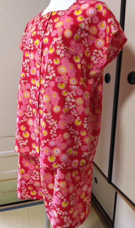 天神さんの古本市に行った日は、10月半ばというのにギラギラな夏日でまだ半そで夏服でしたが・・・ようやく(というよりとつぜん💦)底冷えするようになりました。ようよう夏が終わったところでやっと夏パジャマ完成いつもながら時節におくれるお間抜けぶり😅。2メートルの綿リップルのはぎれを使い切りました。縫うのも易しい、かんたんパジャマ😋。かこみ製図でレディースのフリーサイズ。『大人と子どものナイトウェア』(1989年文化出版局)より😀。だいぶ昔に図書館で借りてコピーしてファイリングしていたものです💦。ホーチミン郊外のトゥイちゃんの姪っ子ちゃんにどう?と言ったら家の者ども(笑)は「・・・ちょっと派手過ぎない🤔?」夏のゆかたを連想する花火にホタルの、和様プリントなのですが。ベトナムの繁華街では一見パジャマかな?と思うようなプリント模様のセットアップを着た女性を、よく見かけますが。私どもが見たかぎりでは、年配の女性が多くて逆に若いひとたちは、シンプルなモノトーンできめているおしゃれが目立ちました。トゥイちゃんの姪っ子はまだ3歳になったばかりで、ほんの洒落のつもりだったのですが💦・・・まあまあ、これなら10年後(笑)でも着てもらえるかなあ😄。人気ブログランキングハンドメイド(洋服)ランキングにほんブログ村にほんブログ村