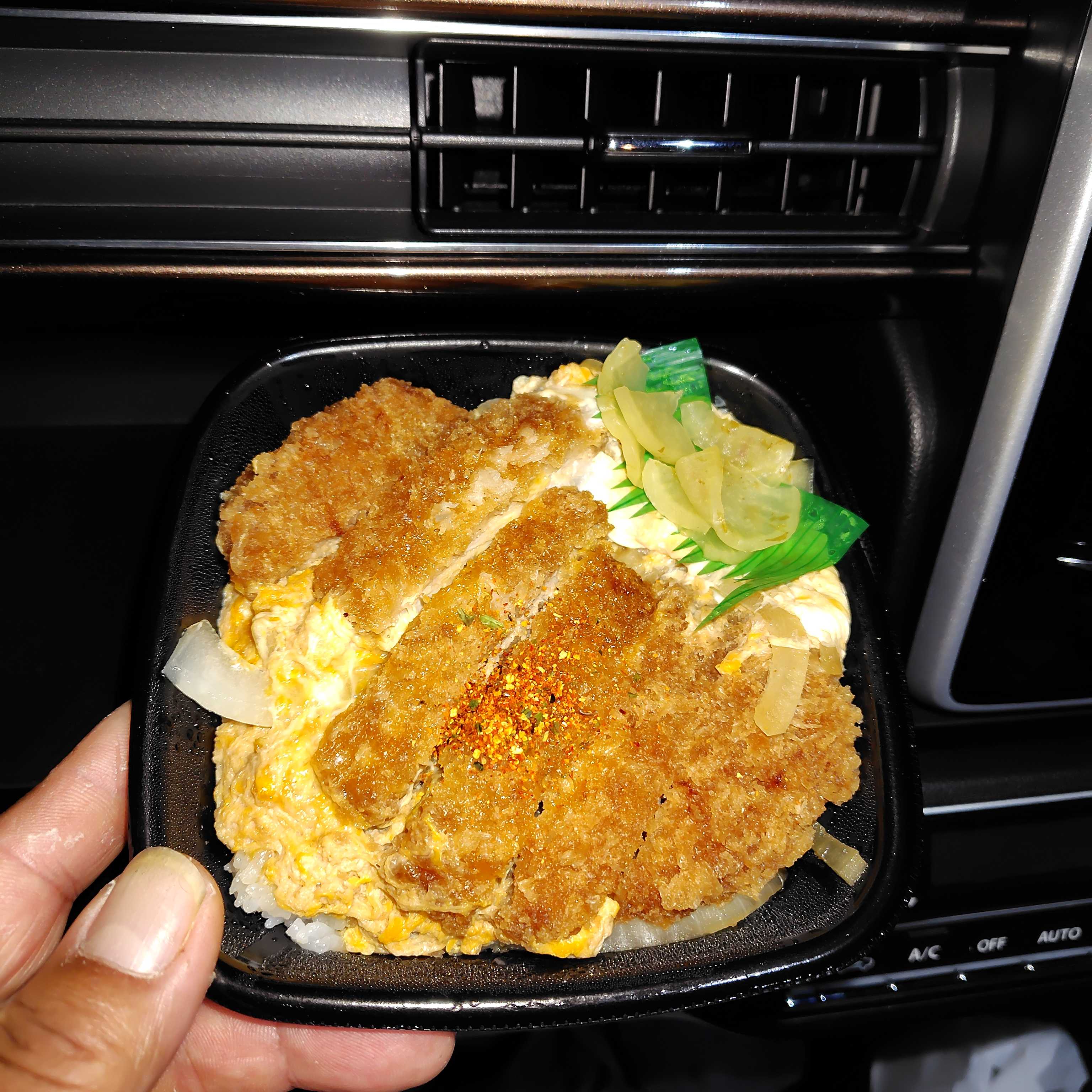 到着したら海都さんはすでに釣りしてましたので、海都さんの釣りを見ながら車内でカツ丼食います😆