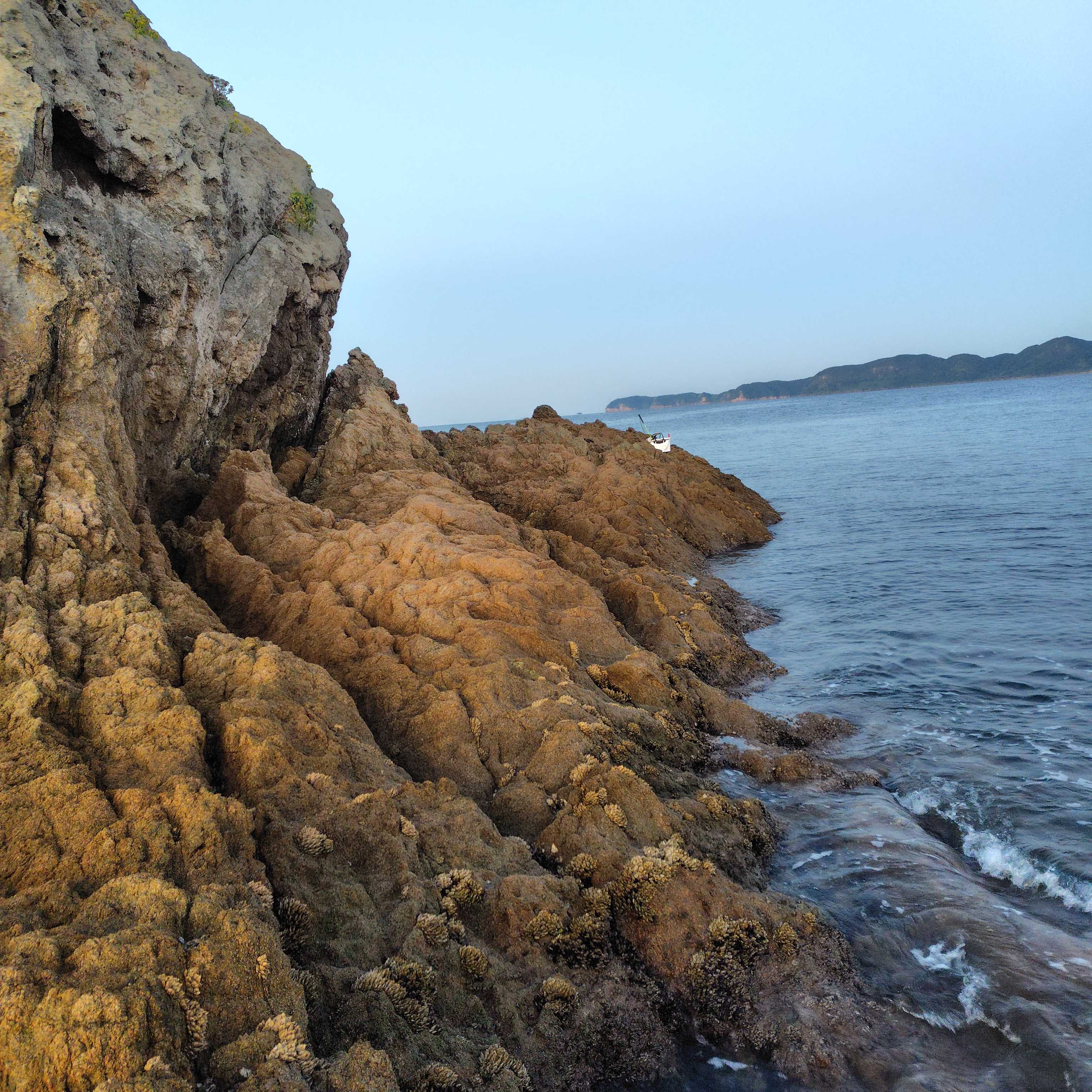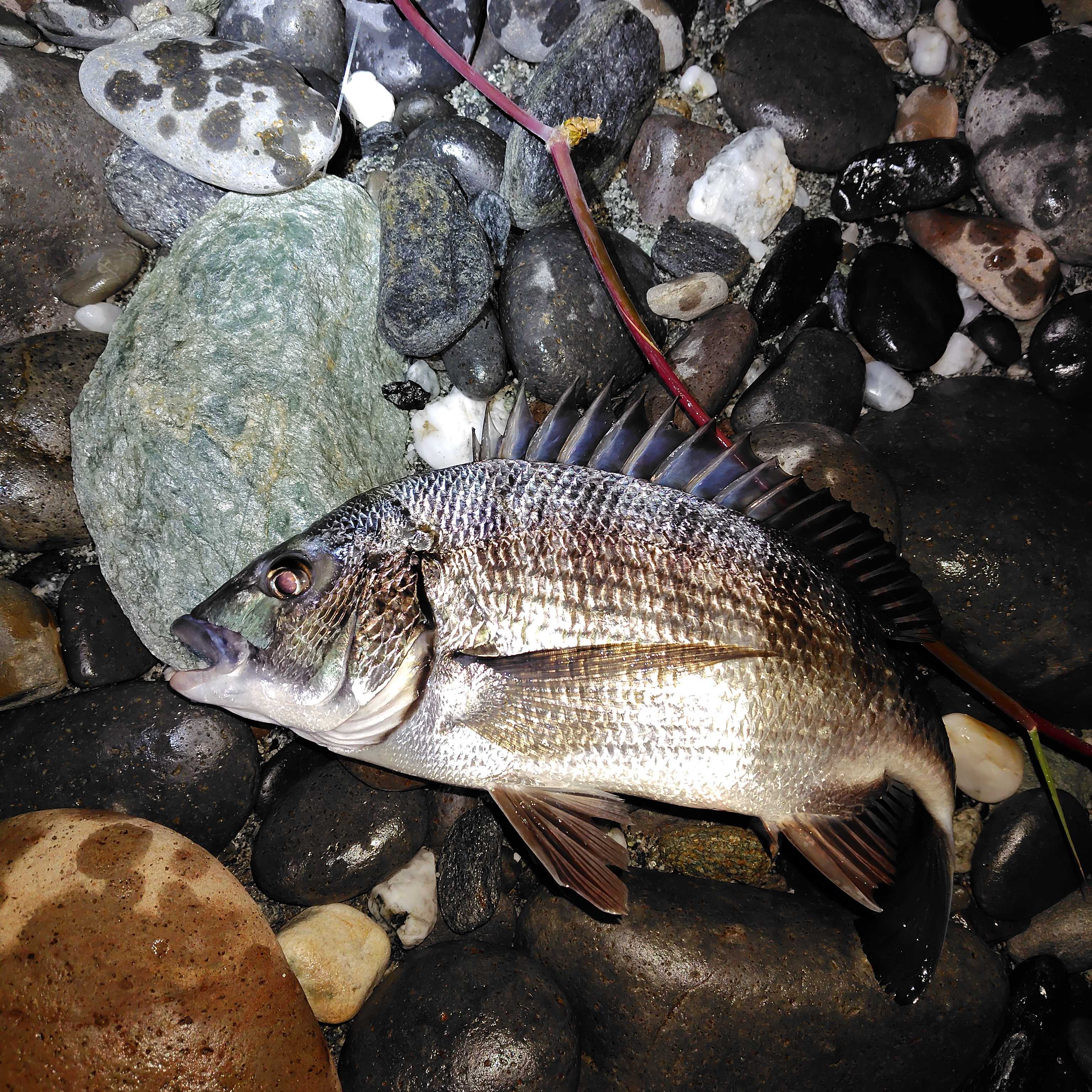 ゴロタ浜で遠浅なんで遠投必須、しかしマキエは届かん