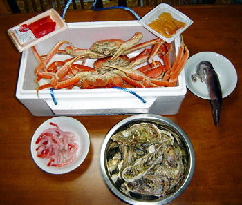 まずはお知らせを。本日、本館サイトの読書感想文、ル=グウィンの『影との戦い』、福井晴敏の『川の深さは』をアップしました。今年最初の本館更新です。そちらも宜しくお願い致します。福井へ旅行に行っていた家族が買って来た土産。写真を見ればもう何の説明も不要でありますな。蟹、牡蠣、イカ、甘エビ、ウニ、明太子と冬の味覚のオンパレード。今夜はこれプラスちらし寿司で海の幸ディナーとなったのであります。いやもう本当に美味しかった♪余計な調理は一切しないで、ボイルしてある蟹はホットプレーとでちょいと温めるだけ。程よい塩加減と蟹の身の味が格別。そして蟹ミソのコクと言ったらもう・・・。酒も飲まないのに、蟹ミソの味わいに極楽気分。これで日本酒飲む方だったらもう本当に最高なのだろうな~。食べ始めは結構な量に感じたけれど、5人がかりで食べたらあっという間に無くなってしまい大満足。でも食べ終えて今1時間程経っているのだけれど、ただでさえ口が乾く寿司メシと蟹やら牡蠣やらを大量に食べたからもう喉がカラカラ。ミカンを5個食べたけれどまだ足りない。今も緑茶を飲んでいるけれど、果して口の乾きは潤されるのだろうか?ひょっとして今夜寝付けなかったりして・・・。