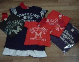 もう9月になっちゃったんですねぇ~少しは涼しくなってくれたらいんだけど・・・秋が来るとまた息子と公園通いの日々かしらさて本題に・・・以前作ったボーダーロンTの生地でこそこそ作り貯めていた物達です オークションにでも試しに出してみようかと思いますすごくドキドキ・・・身の程知らずだろうけどこんだけあっても息子は一人だし(笑)息子サイズしか作れない私なので全部90(笑)誰かのお気に入りになれたらいいなぁ~いまさらだけど今期のクレイジーTはBMから出てるんですよねぇ~以前作ったのと色合いが似てるのがちょっとウレシイ 私、今期はカタログをまだ手に入れてないのです・・・欲しい物もないしshopに行くのも面倒で早く見たいんだけどなぁ~