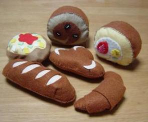 今日から息子が日曜日までばぁばの家にお泊りに行きました寂しいけど、ばぁばも喜ぶし私も息抜きができるので一ヶ月に一回くらいならいいかなそれにしても、息子がいないと暇で暇で・・・我が家はこんなに広かったかしらと思います(せまいんですけどね)息子がいなくてのんびり一人で出来ることといえばハンドメイドです以前から少しずつ裁断してた物をチクチク手縫いで作り上げました~ フエルトのロールケーキとパンなどなどパターンはコチラから↓結構、簡単に作れます細かい作業を黙々とするのが好きな私にはぴったりの暇つぶしでした最近「あーん」「パクパク」っと食べるマネや人に食べさせるフリで遊ぶ息子にちょうどいいかなぁ喜んでくれたらいいなぁ
