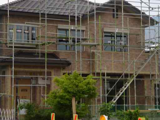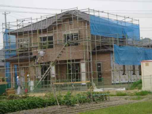 今週に入ってから外壁のマスキング処理→コーキングと作業が進行していた。月曜日(5/29)の写真。上棟からちょうど1ヶ月です。ちなみに1ヶ月前は・・・まだこんな状態早いものです。すっかり家の形になってますね。マスキング処理が施されて・・・。いつの間にやら外壁終了コーキングの作業を見てみたかったのですが私が見に行く時には作業はほとんど終了お兄さんが裏で壁を拭いていました。はみでたのかしらとなるとそのうち足場が取れてしまうのかな?アンテナの取り付けどうしようか?前にも言いましたが、うちの支店では引き渡し前の取り付けはさせてもらえないそうで電気屋さんははしごを使って屋根に登って作業することになるそういまもうひとつ検討中なのはケーブルテレビうちのお父さんの夢は家を建てたらケーブルテレビを導入すること(可愛い夢)ケーブルを引けばアンテナの必要はなくなるかしら