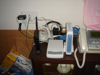 我が家のインターネット事情新居建築にあたり、光ファイバーを導入したのはいいが・・・。光ケーブルの終端装置を始め、光電話のアダプタとルータで電話の周りがごちゃごちゃ収拾がつかずどうしようかと悩んでいましたが、先日母と母のドレッサーを買いに行った時にいい物を見つけちゃいました便乗して一緒に買ってもらい、設置したところまあなんとすっきりしたことかFAX台で中段の後ろがオープンになっているのですがそこに全ての機器類を入れてしまうことでとりあえずかなり見栄えはよくなりましたケーブル類や、ACアダプタの数は何ともしようがないのですがこれで埃もあまり積もらなくなるでしょう。