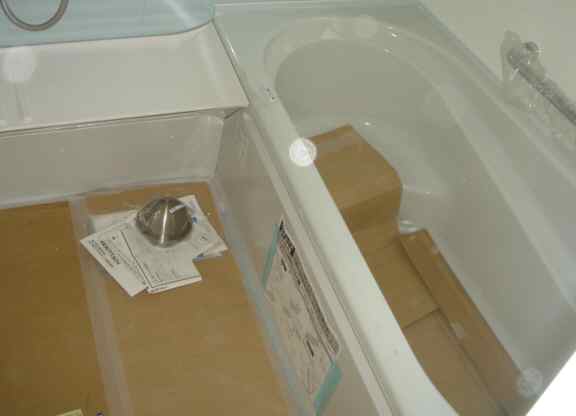 先日家の中を見せてもらった時、お風呂が出来ていたのでのぞかせてもらったむむっ意外や意外・・・。浴槽がとっても小さい気がする我が家のお風呂は最初から魔法瓶浴槽と決めていたので、サイズは自ずと2416サイズに限定されていた。浴槽と洗い場の大きさの比率なんか全然知らなかったし、仕様決めでもアクセントパネルの色しか決めるところがなかったからほとんど何にも考えずに決めちゃったみたいなもの。しか~し、こんなに浴槽が小さいとは思わなかったな~。洗い場部分はこれくらいの幅なのでおよそ浴槽の1.5倍ほど。(ちょっとわかりにくい・・)まあでもあまり浴槽が広いとお湯を張る量が増えて水道代が高くつくししゃーないとするか大きすぎたらお湯冷めるしね。ちなみに今のお風呂は1616サイズ。たぶん今のお風呂の浴槽よりベンチがついている分下手したら小さくなる親子3人で入ったらぎゅうぎゅうかしら子供たちには早く一人前になってもらわなきゃねー