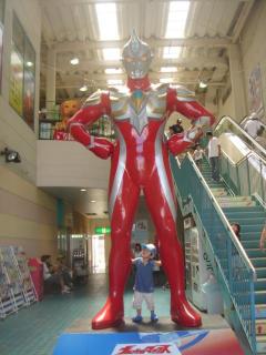 先日の日曜日さとちゃんの兼ねてからの希望でウルトラマンに会いに行った我が家から車で約2時間~一路、貝塚市の円谷ジャングルへここはショッピングモールの中に無料で入れるウルトラマンの展示場みたいなところで、土日にはウルトラマンのヒーローショーもやっているところでウルトラマンも私たちが子供の時代に比べると随分様変わりした。なんといっても映像がとても進化しているので、私が見ても結構面白くてはまってしまう。何しろ我が家は男の子二人なので週末は(平日もずっとだが)ボウケンジャー並びにウルトラマンと(まだ仮面ライダーは加わっていないのが救い)忙しいのだ。ともちゃんもまだまだアンパンマンが大好きだけど、最近ちょっとヒーロー物にはまってきた。で、話は元に戻って円谷ジャングルの正面入口には巨大ウルトラマンマックス(去年放送していたウルトラマン)がいた。これにはさとちゃん大喜びで飛びついていました。おっきなマックスに大満足ですヒーローショーではメビウスとティガが登場していましたが、歌は真剣に歌ってるし、目は舞台に釘付けでしたショーが終わるとこれは有料なのですが一緒に写真撮影できるので記念だと思って行かせてあげました。ガイアに握手してもらいました。そして極めつけはパパの企みで抱きつきに行ったら抱っこしてくれてもう上機嫌ですこの後はメリーゴーランドに乗ってとってもご満悦のさとちゃんでした。ところでともちゃんは全然写真に写ってませんが~どうしていたのかと言うと、さすがにテレビで見ているのとは違ってちょっと怖かったのかずっと私にしがみついていましたでも興味はあるので目はずっとウルトラマンを見ているのですけどねおかげさまでその日からずっと毎日ウルトラマン上映会を行っている我が家なのです。ともちゃん曰く「トトトラマ~ン」ですまた行きたいね。と子供たちは話してますが、実は円谷ジャングル10月1日で閉館なのです。また新しく府内にオープンするらしいですが、私たちにはちょっと遠いな~。
