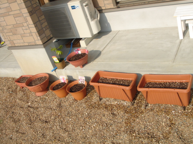 秋も深まりガーデニング日和が続きます先日植えた球根たちはまだ反応ありませんが(当たり前)今日はパパがゴルフでいないので再びさとちゃんを助手に種まきをしました。 左から水仙とピクシーチューリップの球根、今日蒔いたスイートピーとビオラの種、右の二つはチューリップたちです。後ろには夏から置いてあるニームの木(虫除け効果を期待して買いましたが小さすぎるのかあまり効果はありませんでした)その右には種屋さんにおまけでもらったポンポンアスターと松前草の種をさとちゃんが蒔きました。芽が出たら儲けもの芽が出るまではドキドキものですねところで我が家の西側の花壇ですがどうなっているのかと言うと先日造園やさんが植え込みしてくれました。コニファーではゴールドクレストやスカイロケットあたりが有名ですが、この品種はブルーヘブンと言ってあまり大きくなりすぎず特に刈り込みも要らないので楽だろうと選んでくれました。私の性格をよく理解してくれてますクリスマスツリーに使われるそうです花壇には私があまり手入れしなくても勝手に育つように葉っぱものでなんて言ったか忘れました。何ヶ月か経てばモコモコと良い感じに育つそうです。北側から見るとこんな感じに。西側の道路で昼から出ないと日があたらないのでこれくらいで十分でしょう次回は少し庭に木を植えたいと考えてます。また結果をご報告しますやがあったら素敵ですけどね~そんなに簡単ではありませんね
