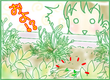 ヨトウムシにやられて、丸坊主になったマリーさんですが、健気にも少しずつ葉を育て、つぼみが膨らんできた今日この頃・・・びっくり仰天、その花殻からナント発芽してました!花ガラ捨てるの面倒だから、いつも表からは見えないオタフクナンテンの奥の方に放置してたんです、んでいつものように、ちょっと枯れた葉とか落ちてたんで捨てようと、ふと見たら・・・何か緑のがチョロっと出てるなあ、と。最初は雑草かと思って引っこ抜こうと思ったんですがなにやら花の残骸らしきものから出てるのに気付いて んがっ! (*゚Д゚*) ええっ!? ・ ・ しばし呆然 ・ うわあーーーい \(*T▽T*)/♪いやもー嬉しかったよ!すごい生命力だわ、マリーさん。梅雨の威力もあるんでしょうねえ。その芽、ほじって見たら、花殻ごとたくさん発芽してたので、あちこち植えてきました♪無事に育ってゆくといいなあ(^^)