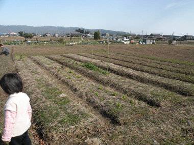 本日、二度目の更新です。三度目の更新もあるかも。ちなみに、芽キャベツくんが1度目の更新です。記事は下のほうにあります、宜しければ読んでってくださいね(^^)さて、本日の4コマいってみましょー・・・自然農のお野菜って、小さいんですもの~~通常40cmはスペースを開けて丁度良いはずの大根がスッカスカ!雑草もないしね、もうねコレ、見てて悲しい(T-T)なんちゅーか、4LDKに一人住まいくらい悲しい。・・・経験ないけど。こう、ぎゅぎゅっと程よく埋まるというか、混み合うくらいの~程よい感覚?そういうの?ちょっと憧れたりして?ま、夏になれば雑草鬱蒼として、丁度よくなるんだろうけど(笑)もちょっと勢いのある成長希望。もうすぐ春なので、大いに期待。んでコッチは、沢山の投票希望(´□`)てか、押してくれてありがとう、なんか返り咲いてます! ↓ ↓ ↓ランキング参加中です(^^) ポチッと応援お願いします♪