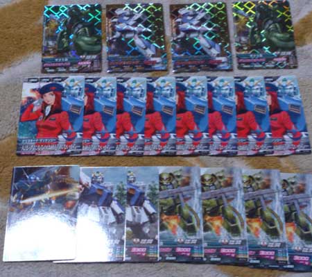 こんばんは 何時もオモ研にご訪問有難う御座います。 なんとか、成果の発表が出来る所まで来ました。皆さんに協力頂き、GUNDAMNT-10!!コレで無事、一息ですね~~(実際にはコレ以外に使用用、フルコンプでの保存用があります(汗))MR.BIGさんmarusanashiさんりお&たいさんぴっぴの嫁さんご協力、有難う御座いました。毎日眺めて楽しんでます。それにしても・・・・・・Pレアより、PBRの方が集め辛いんですね~~流石のレアリティだ!!(爆)それでは~~