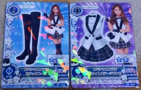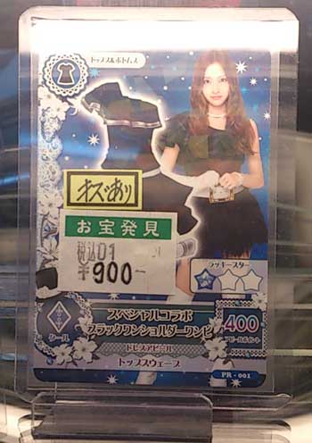 こんばんは 何時もオモ研にご訪問有難う御座います。 先日、撮影・・・・ ともちん・・キズ有りで900円とは恐ろしい・・・・・・ゲーセンでタダで配ってたカードですよ!!キズ無しなら幾らが付くのか気になる~~~(笑)ちなみに・・・・・ちゃお版は300円でした~~ん~~何故?黒の方がともちんは似合うから?(滝汗)それでは~~