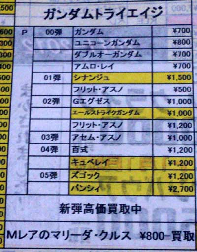 こんばんは 何時もオモ研にご訪問有難う御座います。 ゲットしてきました~~買取新聞(笑)そして・・・・・ビックリ!!マリーダさん・・・・・・ 800円買取!!(前回より更に100円上がってる!!その上別覧まで儲けられて・・・)何処まで価格が高騰するのでしょうか?誰か売らないかな~~販売価格が幾らになるのか、と~~っても、知りたいな~~~(笑)吊り売りされてる所も有るのに、恐ろしい・・・・・・・誰だよこんなに高くなるように誘導した奴は!!(ナイアガラ滝汗)それでは~~(逃げ)