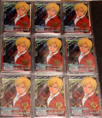 こんばんは 何時もオモ研にご訪問有難う御座います。 本日、里の開〇倉庫にて購入し、無事ワイズマン伍長9ポケ完成しました~~(+使用用フルコンプ用の合計11枚)後2枚だったので前日ショーケースからワイズマン伍長が消えてる事を確認していたので、今日辺りパック売りに・・・・・と確認しに行って、3枚のワイズマン伍長を確認しました。で、2枚を購入!!えっ?里ムシだったら3枚買うところだろう?そうも思ったのですが、1枚キラズレを確認してしまったので・・・・(汗)必要枚数も2枚だったので大切にして貰える人に買って貰えよ!!と、置き去りに(爆)それでは~~