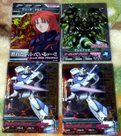 こんばんは何時もオモ研にご訪問有難う御座います。 本日は、嫁が居ないので・・・・・・ぐうたらおやち”でした~~(汗)それでは、3つ目の着弾物を紹介です!!sail through - in my life.管理人MR.BIGさんより、トレード品ガンダムNT-1 ザク2FZ BC他が!!トレード頂き有難う御座いました!!私も、もう少し頑張るかな~~と・・・・・・(笑) Pレア交換希望!!が決まりません(汗)Mレアで余品が有る物付けても良いので考えて頂けると有り難いです。宜しくお願い致します。それでは~~