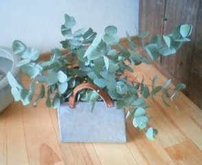 友達の花屋さんでユーカリを買ってきました。とっても大きな一枝空の入れ物があったので、とりあえず入れてみて・・・。残ったもので、リースを作ってみました。とってもかわいく出来上がりましたこれから、ちょこっと飾り付けてみようかなぁ~と思っています