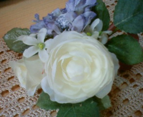 さすがプロ。ささっと、完成とっても、ステキなコサージュですで、刺激を受けて、昨日からちょこっと自分でも作ってみたのでした。お粗末様ですが・・・