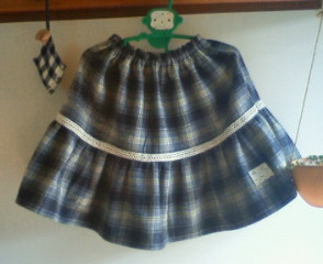 自分のワンピースも、裁断したままなのですが・・・。とりあえず、娘のギャザースカート作りました裾に、ワンポイントでちょっとかわいくなりました