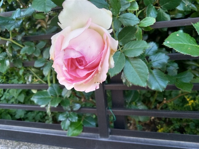 こんにちは。今日は曇り時々晴れです。今日は○バラ○です。△バラ△隣のバラは私がお世話をさせていただいています。コノデヒバの垣根の下に植えているバラです。今はおおよそ満開かな?大きな花でとても綺麗です。△バラ△垣根のフェンスに沿ってバラの蔓を水平に這わせています。ただ、花がつく枝の強さが一定にならないにです。勢いの大きい枝には複数の花がつくのでどこがうれしいのですがやはり一定で咲いてほしいですね。△ニオイバンマツリとオルレア△白い花と紫の花で綺麗ですね。つい最近まで奥のツツジが満開です。早いうちに剪定したいと思っています。ジャーマンアイリスも咲いています。目指しているのはイギリス風ガーデンです。今日の日本株はPF501千円(前日比-2千円)でした今日の取引はありませんでした。今日の予報は最高気温24℃、最低気温19℃です。暖かでしたが意外と温度は上がりませんでした。今日もつたないブログに来ていただきありがとうございました。「花、ガーデニング」「菜園」部門に登録しています。ガーデニング初心者ランキング家庭菜園ランキングにほんブログ村↑一日1回クリックして戴けると嬉しいです。花バラオルレアニオイバンマツリ