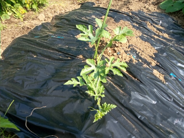 こんにちは。今日は晴れです。今日は○スイカ○です。△スイカ△小玉スイカを植えていますが今日、芯先を摘芯しました。これから子蔓を3本残して2個ずつ実をつけたいと思います。△ソラマメ△今日、実家で借りているソラマメがサルに食べられていることがわかりました。もうづ少しで収穫だったので残念です。天井の網が破られていました。網は補修しました。△ジャガイモ△このジャガイモもも猿に引き抜かれ一緒に出た芋は食べられていました。畝は黒マルチしています。△ジャガイモ△花が咲いていました。品種はデストロイヤーです。こちらも猿に食べられていました。今日はジャガイモに化成肥料を追肥して土寄せしました。マルチをしていない2畝です。地ばいキュウリとキャベツを植え付けました。今日は、里芋の草取りをしました。今日の日本株はPF512千円(前日比+7千円)でした今日の取引はありませんでした。今日の予報は最高気温25℃、最低気温15℃です。今日は温度が上がりました。今日もつたないブログに来ていただきありがとうございました。「花、ガーデニング」「菜園」部門に登録しています。ガーデニング初心者ランキング家庭菜園ランキングにほんブログ村↑一日1回クリックして戴けると嬉しいです。家庭菜園スイカそら豆ジャガイモ
