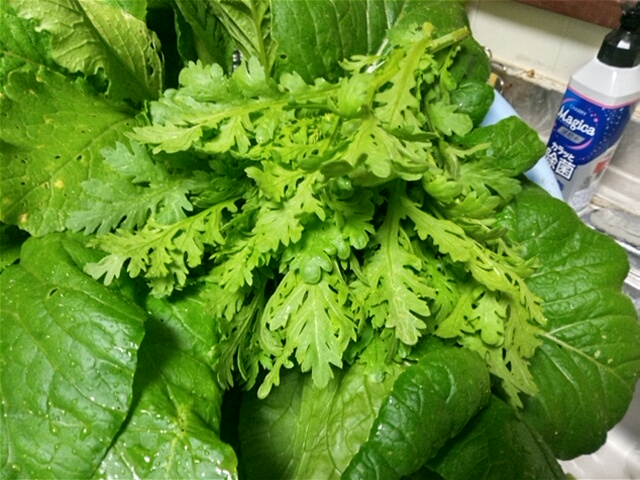 こんにちは。今日は晴れ時々曇りです。今日は○春菊○です。△野菜収穫△今季、春菊を初めて収穫しました。大きくなった茎の太い部分を折り取って収穫しました。春菊はみそ汁の具か胡麻和えかな。大きくなった小松菜や青梗菜を収穫しました。コカブはすべて収穫終了しました。近所に少しですがおすそ分けしました。△ハヤトウリ△2週間ほど前にビニールポットに植え付けたハヤトウリです大きな実をそのまま植え付けました。すでに袋に入り売れれているときからネガ出ていました。この売りはそのまま植えるというので内に半分ほど隠れるように土を入れて水を焼ておきました。ユウガオのような葉っぱが出てきてキュウリのような蔓が伸びだしてきています。今はもう種はしぼんで梅干しのようになっています。収穫は10~11月とのことなので長い期間の栽培になります。実家に植えようと思っているので猿に屋良られなければよいのですが心配ですね。貸農園のトウモロコシは昨日の強風で倒れていました。土を寄せて直しました。ショウガの植え付けたポットで2鉢目の芽が出てきました。芽が出るのが長すぎますね。今日の日本株はPF514千円(前日比+4千円)でした今日の取引はありませんでした。今日の予報は最高気温23℃、最低気温18℃です。今日は涼しかったですね。今日もつたないブログに来ていただきありがとうございました。「花、ガーデニング」「菜園」部門に登録しています。ガーデニング初心者ランキング家庭菜園ランキングにほんブログ村↑一日1回クリックして戴けると嬉しいです。家庭菜園春菊小松菜チンゲン菜コカブ