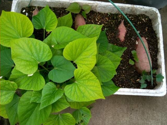 こんにちは。今日は晴れ時々曇りです。今日は○サツマイモ○です。△サツマイモ△種イモとして植え付けたサツマイモが順調に蔓を出しています。品種はほくほく系の紅東です。水耕栽培したものは畝にそのまま芋ごと畝に植えてけてあります。蔓が伸びればその先端部を切り取って苗としたいと思っています。△キャベツ△キャベツが穴だらけになっています。青虫に食べられています。手で取るだけでは防ぎきれないみたいです。朝顔の蔓にはカメムシがいっぱい止まっています。ミカンの汁を吸うのでいてほしくはないのですが物陰で越冬したみたいですね。冬は暖冬だったのかもしれません。△ショウガ△ショウガの芽が出だしました。昨年収穫した大ショウガを植えたものです3鉢分あります。追加のタネの購入も考えたのですが1袋1200円いようもするので躊躇しています。まだ小さい芽ですがすぐ大きくなると思います。今日も近くのスーパーまで買い物に行っています。広告の特売品目当てに買い物しています。胡蝶蘭3鉢に発酵した米のとぎ汁を与えました。今日の日本株は休みです。今日の予報は最高気温26℃、最低気温18℃です。今日は暑かったです今日もつたないブログに来ていただきありがとうございました。「花、ガーデニング」「菜園」部門に登録しています。ガーデニング初心者ランキング家庭菜園ランキングにほんブログ村↑一日1回クリックして戴けると嬉しいです。家庭菜園サツマイモキャベツショウガ