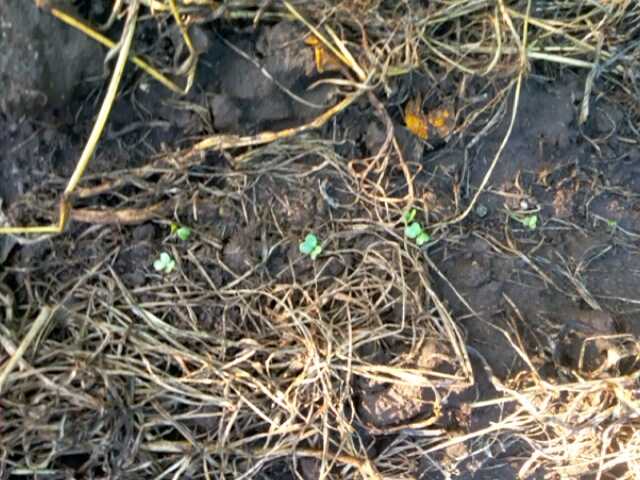 こんにちは。今日は晴れです。今日は○コカブ○です。△コカブ△3日前に貸農園に蒔いたコカブが発芽しました。双葉が出ています。暑くて乾燥するので枯草をかけていました。△ニンジン△4日前に種をまいたニンジンです。掛けていた枯草を取ったら小さな芽が出ていました。少し深めに種をまきました。乾きが早いので覆土を多くしました。本来は土を薄くかけるのがセオリーですが覆土を薄くすると乾きが早く発芽しても乾燥害にあいます。△秋キュウリ△秋キュウリの小さな実が出来ています。地ばいキュウリです。4か所に3粒づつ蒔いて2本間引きました。もうすぐ収穫になるでしょう。△夏野菜の収獲△ナス、トマト、ミニトマトを収穫しました。大玉トマトは一部が白くなって腐ったようです。収穫後は畝間に水やりしました。今日の日本株はPF559千円(前日比+1千円)でした今日の取引はありませんでした。今日の予報は最高気温34℃、最低気温27℃です。今日も熱中アラート警報が出て暑かったです今日もつたないブログに来ていただきありがとうございました。「花、ガーデニング」「菜園」部門に登録しています。ガーデニング初心者ランキング家庭菜園ランキングにほんブログ村↑一日1回クリックして戴けると嬉しいです。家庭菜園小蕪ニンジンキュウリ夏野菜の収獲