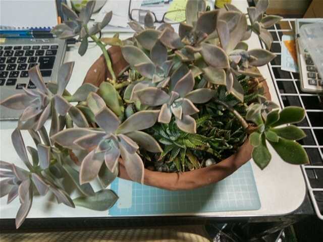 こんにちは。今日は晴れです。今日は○多肉植物○です。△多肉植物△手製の鉢に植えた多肉植物です。暑い中、元気に育っています。門扉の上の一番日の当たるところに置いています。3種類植えてあります。多肉植物は、水管理が楽なのでサボテンと一緒に育てています。我が家のウチワサボテンは4mを超えている大きな植物になっています。今は黄色い花がぼちぼちと咲いています。21年前に育て始めたものです。今回は琉球朝顔に絡まれているので写真なしです。連日猛暑なので熱中症警戒アラートが出されています。私は庭の植物に水やりが忙しいですね。先日、日当たりの良い場所の鉢物には日よけシートを張って50%遮光しています。でも1日2回の水やりになっています。今日も貸農園の夏野菜の収獲と水やりをしました。写真は撮り忘れした。いつものナス、オクラ、トマト、ヒラサヤインゲン、キュウリでした。秋キュウリは、地ばいですが紐で立ち上げ1.5mになっています。小さな赤ちゃんキュウリがついています。今日の日本株はPF558千円(前日比+2千円)でした今日の取引はありませんでした。今日の予報は最高気温34℃、最低気温26℃です。昨日よりは過ごしやすかったです。今日もつたないブログに来ていただきありがとうございました。「花、ガーデニング」「菜園」部門に登録しています。ガーデニング初心者ランキング家庭菜園ランキングにほんブログ村↑一日1回クリックして戴けると嬉しいです。観葉植物多肉植物夏野菜の収獲