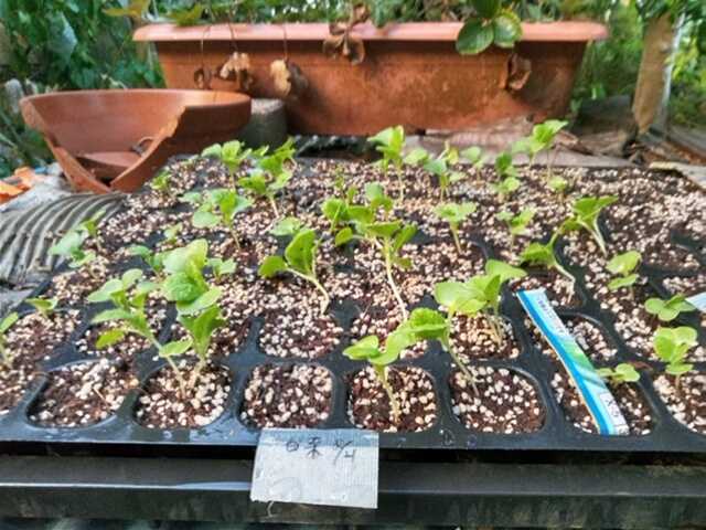 こんにちは。今日は晴れです。今日は○白菜○です。△白菜△白菜をまいたのは8月21日です。今日で10日経ちます。今日4時ごろに雷雨があり打たれてしまいました。一部はひっくり返っています。ちょっと油断してしまいました。一般的には播種後15日くらいで植え付けつるみたいです。まだ本葉2枚というところでしょう。発芽が2段階になっています。徒長しているのが一番最初に発芽したものです。まだ本葉が1枚のが後に発芽したものみたいです。作業小屋の屋根の上で強光をガンガン浴びてそれでも徒長するなんて嘘みたいな感じです。水やりは朝1度だけです。これ以上徒長するならば3寸ポットに鉢上げするしかありません。それで少し深植えにします。今日の雨で徒長を加速しなければいいのですが・・・。葉が4~5枚になったら植え付けます。ちなみに同じ日に隣に蒔いたサニーレタスは発芽してきません。蒔き直しを検討します。△米糠ぼかし△自分で米糠ぼかし肥を作っています。場所は駐車場の奥です。原料の米糠はコイン精米所から無料でいただいています。今は暖かいので1週間程度で完成します。今は前に作ったぼかし肥料があるのでそれを生糠に混ぜてから水を加えて、水分が均等に回るように攪拌します。俗に言う握った塊が突っついた時にほろりと崩れる程度に加水するです。容器は厚手の段ボールを使います。底には通気を良くするために籠を敷いてあります。段ボールの上にはバスタオルを掛けて通気性を良くしています。冬は温度が上がりにくくなるので段ボールを上にかけたままになります。後は1日1回攪拌して発酵熱が無くなれば出来上がりです。生糠は50L用意しています。出来上がりは30~40Lくらいになってしまいます。今日も貸農園の夏野菜の収獲を行いました。ナス、キュウリ、トマト、丸オクラ、ツルムラサキでした。今日は写真なしです。水やりのついでに米糠ぼかし費を畝の中に施しました。毎日、柿とブドウ三昧です。近所におすそ分けしましたがまだまだいっぱい余ります。糖尿病にならないか心配なほどですね。今日の日本株は休みです。今日の予報は最高気温37℃、最低気温27℃です。光化学スモック注意報が出ました。暑かったですね。今日もつたないブログに来ていただきありがとうございました。「花、ガーデニング」「菜園」部門に登録しています。ガーデニング初心者ランキング家庭菜園ランキングにほんブログ村↑一日1回クリックして戴けると嬉しいです。家庭菜園白菜ぼかし肥夏野菜の収獲