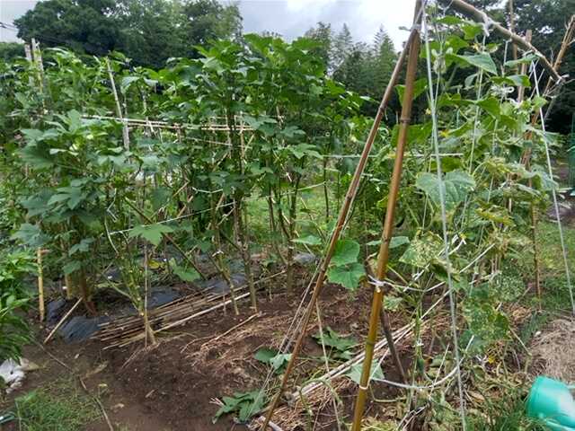 こんにちは。今日は晴れです。今日は○夏野菜の収獲○です。△夏野菜の収獲△今日も夏野菜のナス、きゅうり、丸オクラ、ツルムラサキ、モロヘイヤを収穫しました。モロヘイヤ路とツルムラサキが大量にとれています。近所におすそ分けしようと思います。トマトの樹はすべて撤去して裁断しました。生糠をふりかけて踏みつけしました。昨日、根出しして蒔いた小松菜はもう双葉が見えてしました。暑いと生育が早いですね。虫にやられなくて順調に育てばいいのですが・・・。ちなみに2週間前に蒔いたコカブは虫に食べられ全滅です。イチゴの枯葉を切り取り、処分しました。明日は午後から雨そうなので実家の畑に行き、秋野菜のための畑の耕しをしたいと思っています。出来ればの話です。イノシシ対策と猿対策もしないとと忙しいです。イノシシ対策には篠竹でバリアを作り、猿対策には、唐辛子スプレーを作成し周辺に散布します。効果は結果をみるしかないですが・・・。今日の日本株はPF583千円(前日比-1千円)でした今日の取引はありませんでした。今日の予報は最高気温33℃、最低気温27℃です。今日も暑かったです。今日もつたないブログに来ていただきありがとうございました。「花、ガーデニング」「菜園」部門に登録しています。ガーデニング初心者ランキング家庭菜園ランキングにほんブログ村↑一日1回クリックして戴けると嬉しいです。家庭菜園夏野菜の収獲小松菜害獣対策