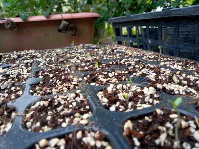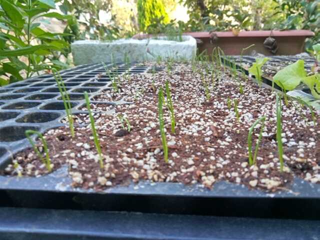 こんにちは。今日は晴れです。今日は○玉ねぎ○です。△玉ねぎ△玉ねぎが発芽して1週間です。発芽がそろいませんでした。ですからまばらですね。そんなにいっぱいの苗は必要ではないのですがダイソーの種を1袋全部蒔きました。120個ありました。半分でもあれば十分です。昨年は大きくならず散々でした。今年は大きな苗を作りたいと思っています。△九条ネギ△こちらは、4日ほど水に浸けて発芽を確認してばらまきした九条ネギです。覆土が足りなかったため黒い種の皮が先端に付いて発芽しています。でもこちらの方が発芽が良いですね。今日も隣の家で剪定作業と蔓バラの植え付けを行いました。2本だけなのですがレンガのようなブロックを敷いたところだったのでそのブロックを外して植えてけなければならなく大変な作業になりました。今日の日本株はPF620千円(前日比±0千円)でした今日の取引はありませんでした。今日の予報は最高気温32℃、最低気温22℃です。暑かったですね。今日もつたないブログに来ていただきありがとうございました。「花、ガーデニング」「菜園」部門に登録しています。ガーデニング初心者ランキング家庭菜園ランキングにほんブログ村↑一日1回クリックして戴けると嬉しいです。家庭菜園玉ねぎ九条ネギ