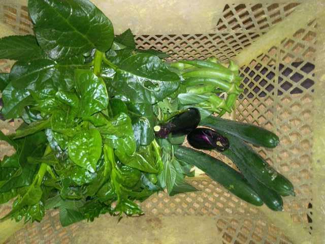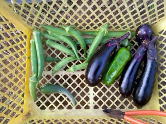 こんにちは。今日は晴れです。今日は○夏野菜の収獲○です。△夏野菜の収獲△今日も貸農園の野菜を収穫しました。ナス、きゅうり、ピーマン、丸オクラ、ツルムラサキを収穫です。ナスは虫に穴を開けられています。残念ですね。今日は水やりのついでに米糠ぼかし肥をネギに施しました。ブドウと柿を収穫しました。近所におすそ分けしました今日の日本株はPF563千円(前日比±0千円)でした今日の取引はありませんでした。今日の予報は最高気温35℃、最低気温28℃です。今日も暑かったです。相変わらず熱中症アラート警報がまた出ています。今日もつたないブログに来ていただきありがとうございました。「花、ガーデニング」「菜園」部門に登録しています。ガーデニング初心者ランキング家庭菜園ランキングにほんブログ村↑一日1回クリックして戴けると嬉しいです。家庭菜園夏野菜の収獲ネギ