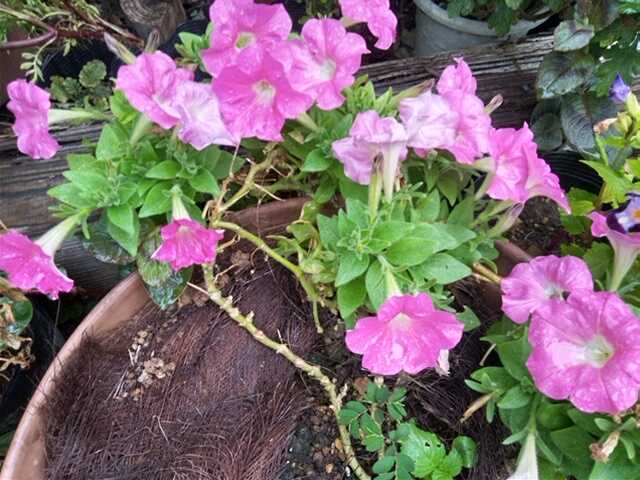 こんにちは。今日は雨です。今日は○ペチュニア○です。△ペチュニア△雨に弱いペチュニアですが今日は嬉しそうに感じました。朝から雨が大量に降ったので雨水を水槽3つに溜めました。ペットボトルやジョロにまで水を詰めました。また明日からは温度が高くなる予定です。△トレニア△雨が降ってトレニアも復活してきています。暑くて水が少なかったですからね。全体に水がしみわたった感じです。このほかのジニアにも恵みの雨のようでした。今は雨も上がり台風対策を前のモードに戻そうと思っています。今年は、長年にわたり育ててきた大株のアジサイが枯れてしまいました。多分40年以上育てていたと思います。とても残念です。水もしっかり上げていたのですがモグラが根を切ったのが原因のようですね。それと地植えのクリスマスローズの1株が枯れそうです。今までにない状態ですね。同じところに必ずあるはすでした。今年は葉が全部倒れてます。2週間ほど前に蒔いたフリーレタスが1本しか出ませんでした。昨日にタッパーにキッチンペーパーを置き種を置き水を霧吹きして湿らせ改めて根出しをして今日植えました。今日種まきしたのはビーツです。128穴のセルトレイに蒔きました。春菊の種を根出ししようと思いタッパーに入れて霧吹きしました。1年以上経つ種では発芽しないことも多いのでこのような方法で確かめ発根すればすぐ畑に植えます。近所のなじみのスーパーが団地を変えて開店したのでそこへ行ってみました。結構混んでましたね。安売りの広告が出てましたので様子見ながらというところです。今日の日本株はPF280千円(前日比±0千円)でした。今日の取引はありませんでした。今日の予報は最高気温28℃、最低気温25℃です。今日は雨なので涼しく感じました。今日もつたないブログに来ていただきありがとうございました。「花、ガーデニング」「菜園」部門に登録しています。ガーデニング初心者ランキング家庭菜園ランキングにほんブログ村↑一日1回クリックして戴けると嬉しいです。花ペチュニアトレニア