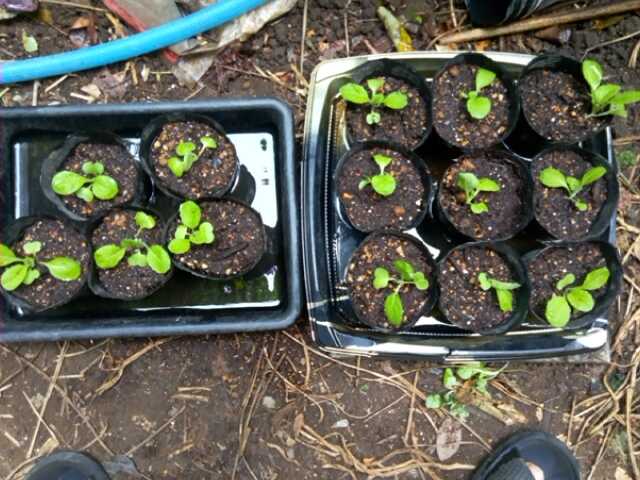 こんにちは。今日は晴れです。今日は○白菜の鉢上げ○です。△白菜△品種は60日白菜です。ダイソーのタネです。128穴のセルトレイで育っている白菜を鉢上げしました。14ポット分になります。△白菜△本葉が3枚になったので大きい物から9cmのビニールポットに鉢上げしました。毎年、白菜が大きくならずに終わってしまうので今年は4日早く種蒔きをし、植え替えもしてみました。なにしろ連日35~36℃の気温ですから無理な状態で育てているとは感じています。△白菜△元々のセルトレイはこんな感じになりました。明日は台風が来るらしいので雨の当たらないところに収納します。徒長しないといいのですが・・・。△夏野菜の収獲△台風の準備としても物はほとんど小さいものまで収穫しました。実がついていると振り回されて被害が拡大するからです。秋キュウリの棚は少し簡易な支柱なのでビニールひもで北欧しました。畝全体が2m以上あるので支柱にまとめて縛り付けています。オクラは支柱なしで枝を株事まとめてつなぎました。台風が来るので予備の電池を買い足しました。今日の日本株はPF578千円(前日比+15千円)でした今日の取引はNTTを100株買いました。買ったとたん下がりました。がっくりです。今日の予報は最高気温34℃、最低気温27℃です。いくらか最高気温が下がりました。嬉しいですね。今日もつたないブログに来ていただきありがとうございました。「花、ガーデニング」「菜園」部門に登録しています。ガーデニング初心者ランキング家庭菜園ランキングにほんブログ村↑一日1回クリックして戴けると嬉しいです。家庭菜園白菜夏野菜の収獲台風対策
