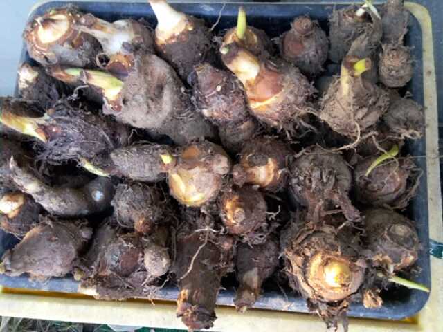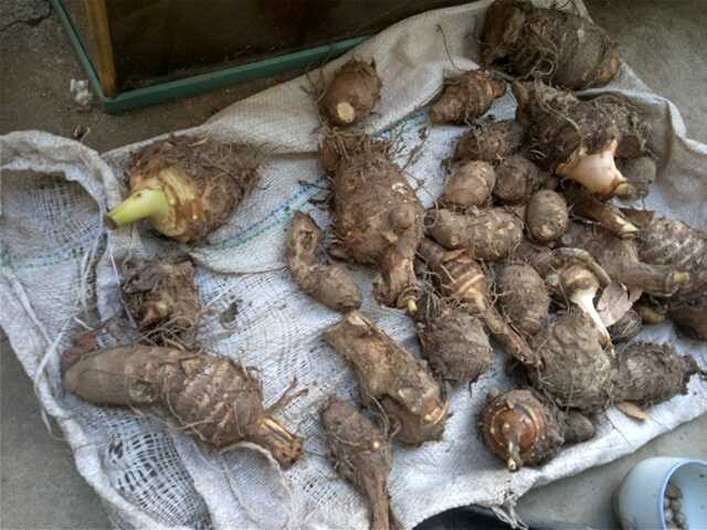 一部は、畑に穴を掘り株を裏返しにして埋めています。