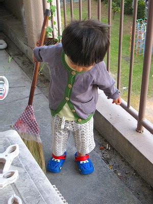 ちびがほうきを持ってきてお掃除をしてくれました。