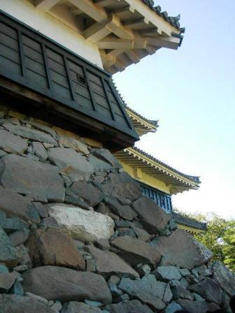 さて、塩尻から長野自動車道で松本まで進み、松本城近くの駐車場に到着したときには15:00を過ぎていた。入城料600円を払って、いよいよ天守閣に潜入…。と、思ったら、何やら行列が…。「何の行列だろ???」と、訊ねてみると、入城待ちの行列だという。「待ち時間約30分です!」おいらもいろんなお城をめぐってきたが、入城待ちだったというのは初めてのこと…。まぁ国宝だからだろうか…。しかし、待ち時間に読んでくださいと、パンフをくれたのだが、これがオモローだった。一部抜粋してみると…。松本城は何故黒い??築城当時の技術では、漆喰壁が雨でぬれると崩れてしまうので、下見板に黒漆を塗って防水効果を果たしたため…。また豊臣秀吉の趣向で、金箔をはった瓦や破風の飾りで城が栄えるように、敢て黒くしたともいわれる。1000トンを支える石垣松本城の天守閣は1000トン、この重量級のお城を支える石垣は、石の大きさが不揃いで、見た目にはきれいには見えないが、この「野面積み」という積み方は、石同士の結合を強くした「名を捨て実をとる」工法だったといえる。明治の頃、一度天守閣が傾いたことがあったらしいが、それでも崩落することなく現在に至るのはさしずめ、この縁の下の力持ちのおかげなのかもしれない。実は6階建て…。下から2番目の屋根の部分が実は3階。もちろん外から見えないので、窓もない。倉庫として使われていたといわれる。そのほか築城主 島立貞永(しまだちさだなが)小笠原一族によって1504年に築城、当時は深志城と呼ばれた。1550年甲斐の国・武田信玄に攻め込まれ落城、小笠原氏が去る。1582年 織田信長によって武田氏が滅び、小笠原氏が復帰、再入城。小笠原貞慶によって、城を大修復し、松本城とあらためた。石落とし、鉄砲狭間も設けられている。鉄砲対策もされている。天守閣の周りを櫓が囲む要塞型の連結式平城といえる松本城 左手前 月見櫓 左中 辰巳附櫓 左奥天守閣中の渡り廊下のような構造 渡櫓右 乾小天守天守閣内も混雑、まるで高速道路並みの渋滞であったが、武者窓から流れてくる乾いた風が心地よかった。 17:00 100名城のスタンプ帳に、初めてスタンプが捺印された。本来ならこの後安曇野方面に行く予定だったが、さすがにこの時間では無理…。この日の宿泊地である中津川市へ、19号線を疾走。