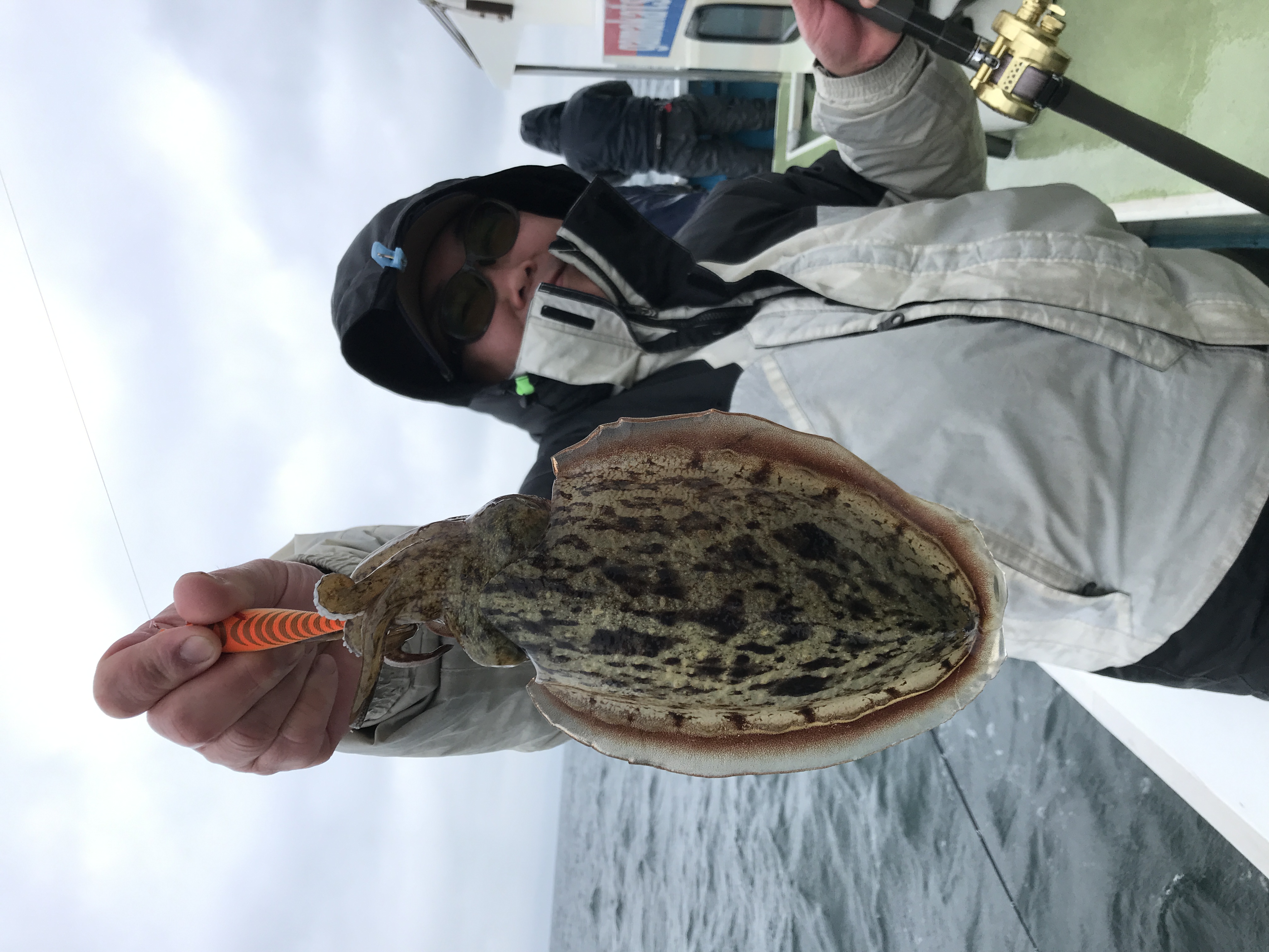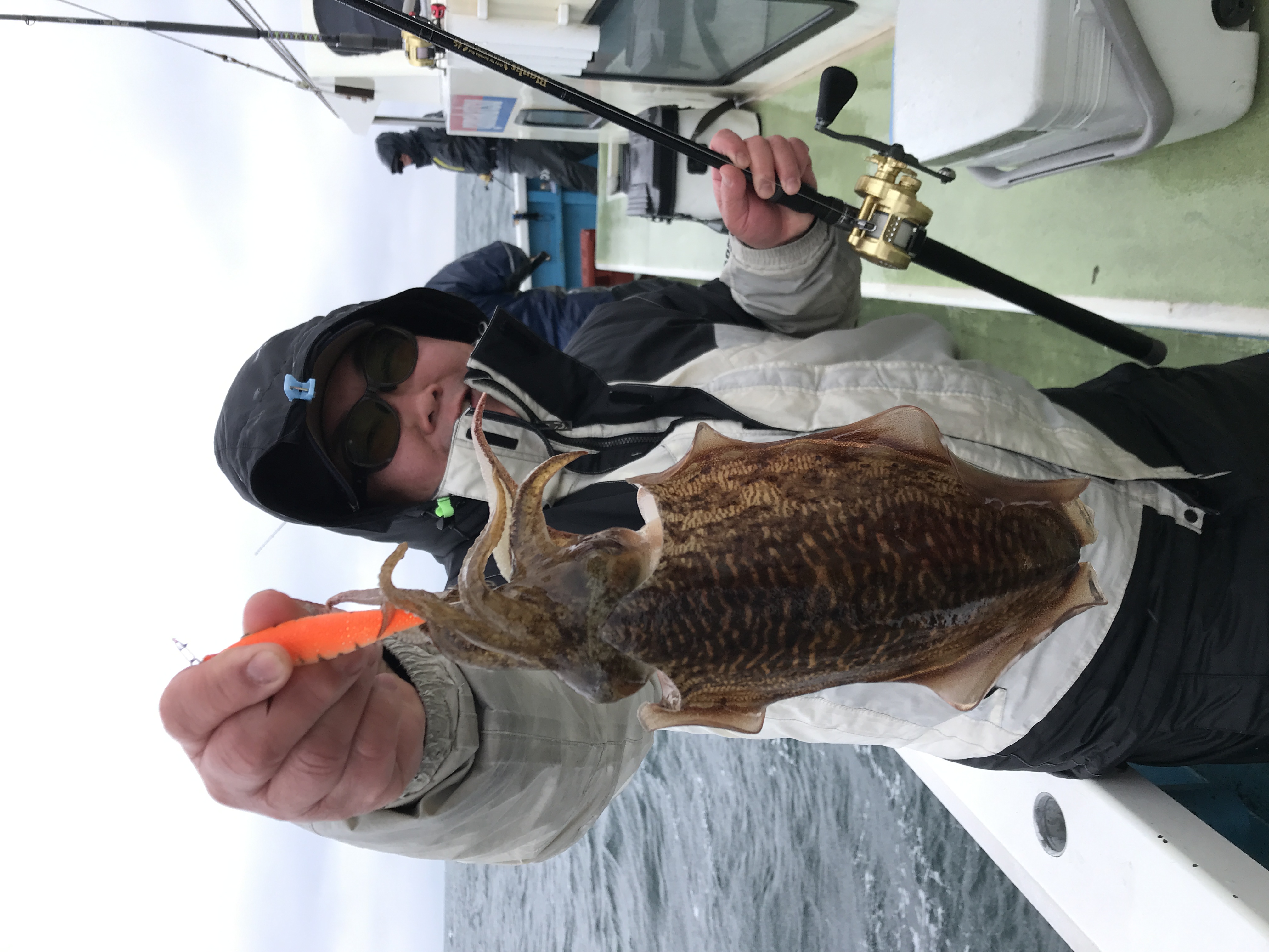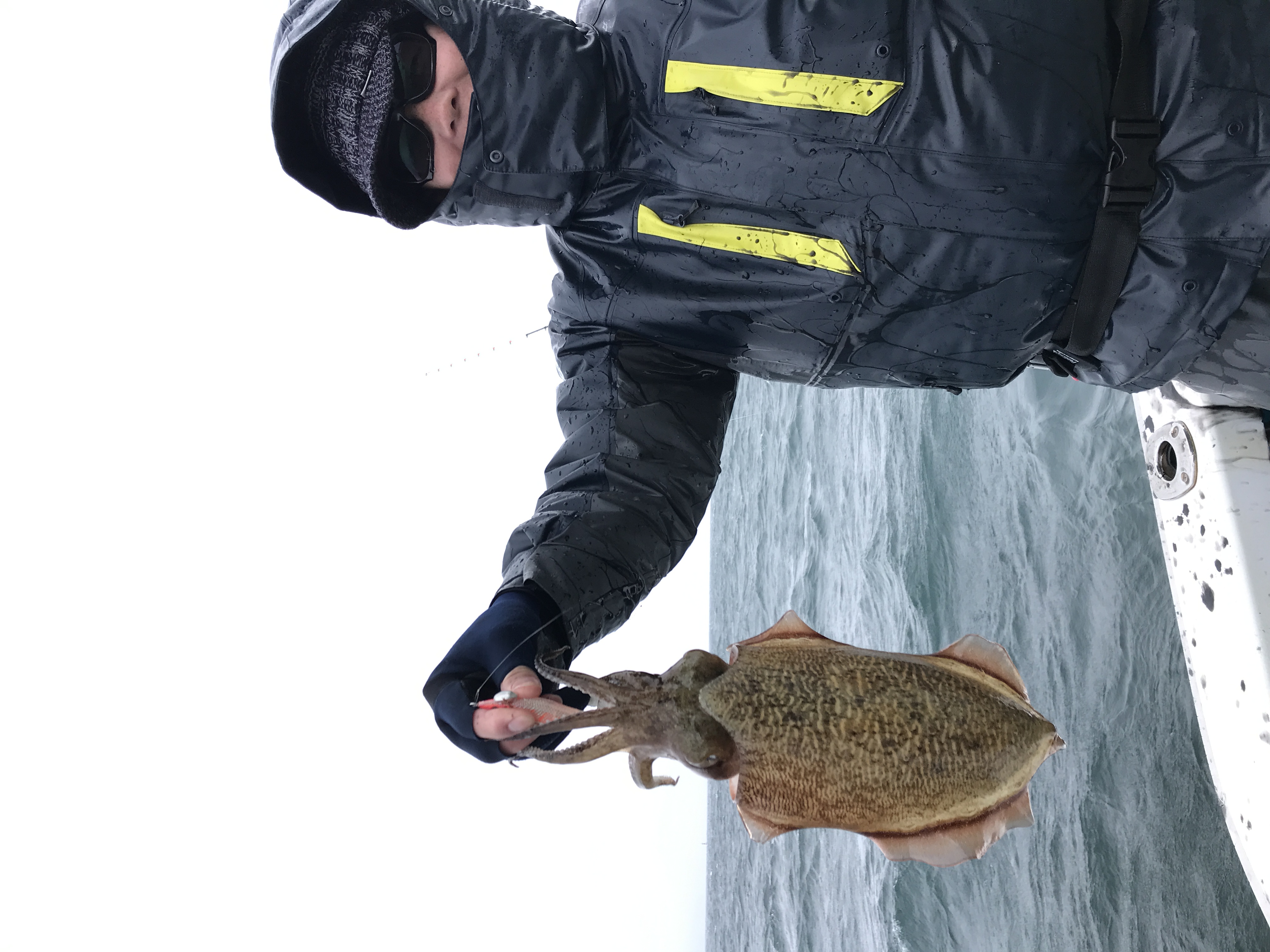 時化で海ぐちゃぐちゃの中がんばって行ってきました。さすがに悪条件だったのでアタリは少なく苦戦。エギチームは特に厳しかったようでエギ師匠の2杯キャッチ以外はシリヤケイカとワニゴチだけ...スッテチームもなかなか難しく船もグラグラ揺れてバラシも有り、それでもなんとかたま~に型は見れました。スミイカ初挑戦の女性もキャッチできました♪ 風強くて舵が離せずキャッチできたけど写真撮りに行けなかった方もお二人、ゴメンナサイ~