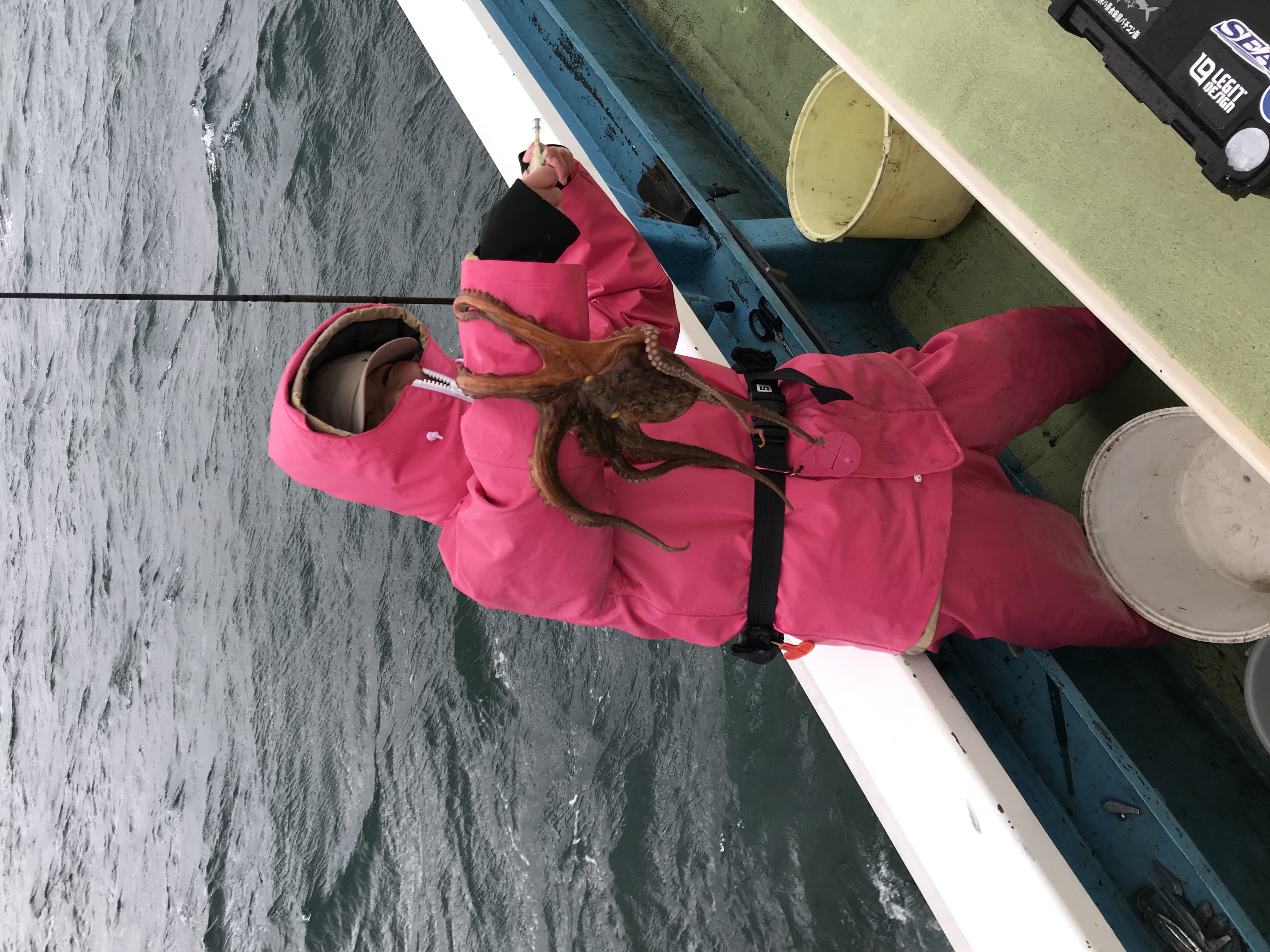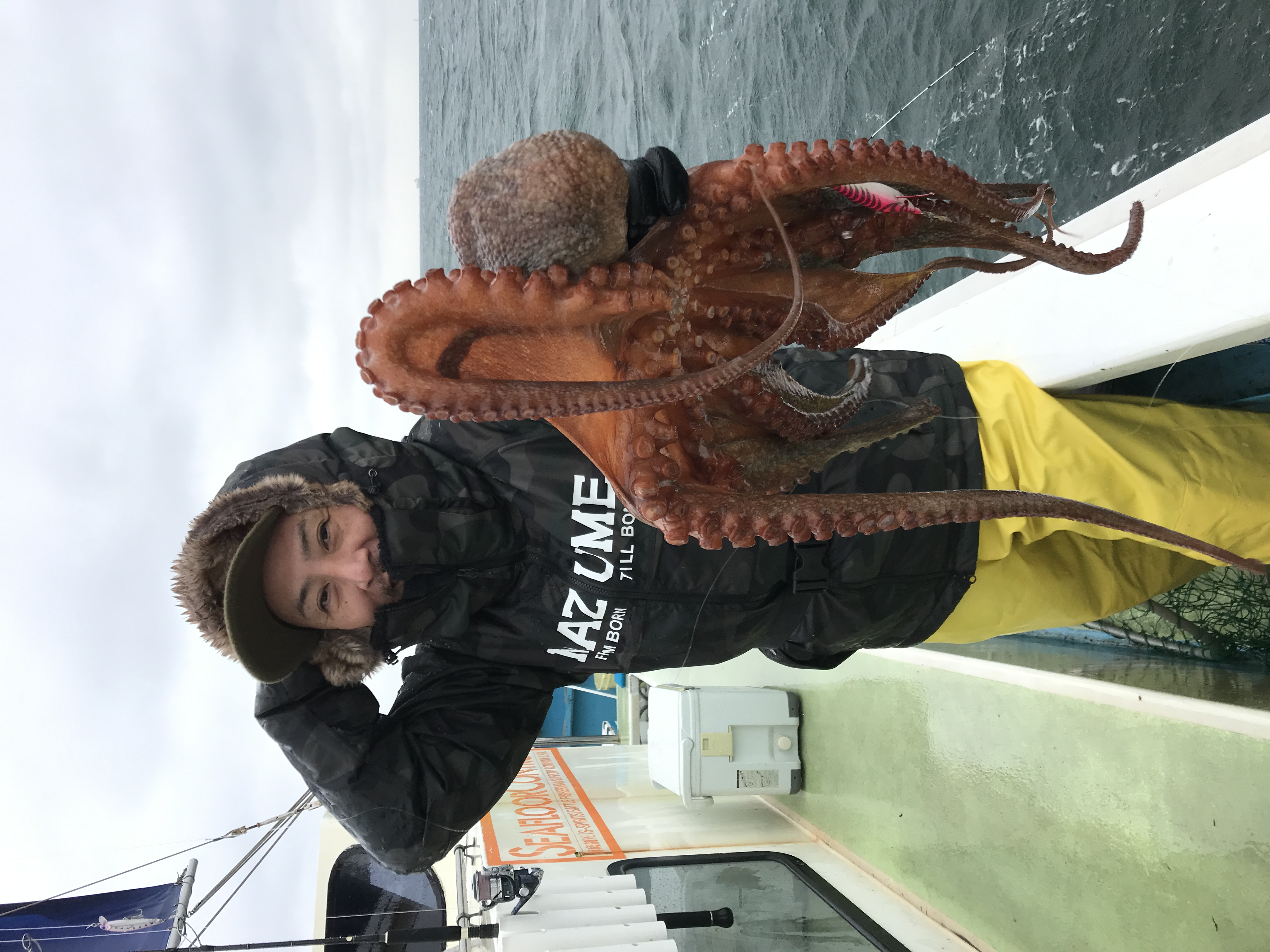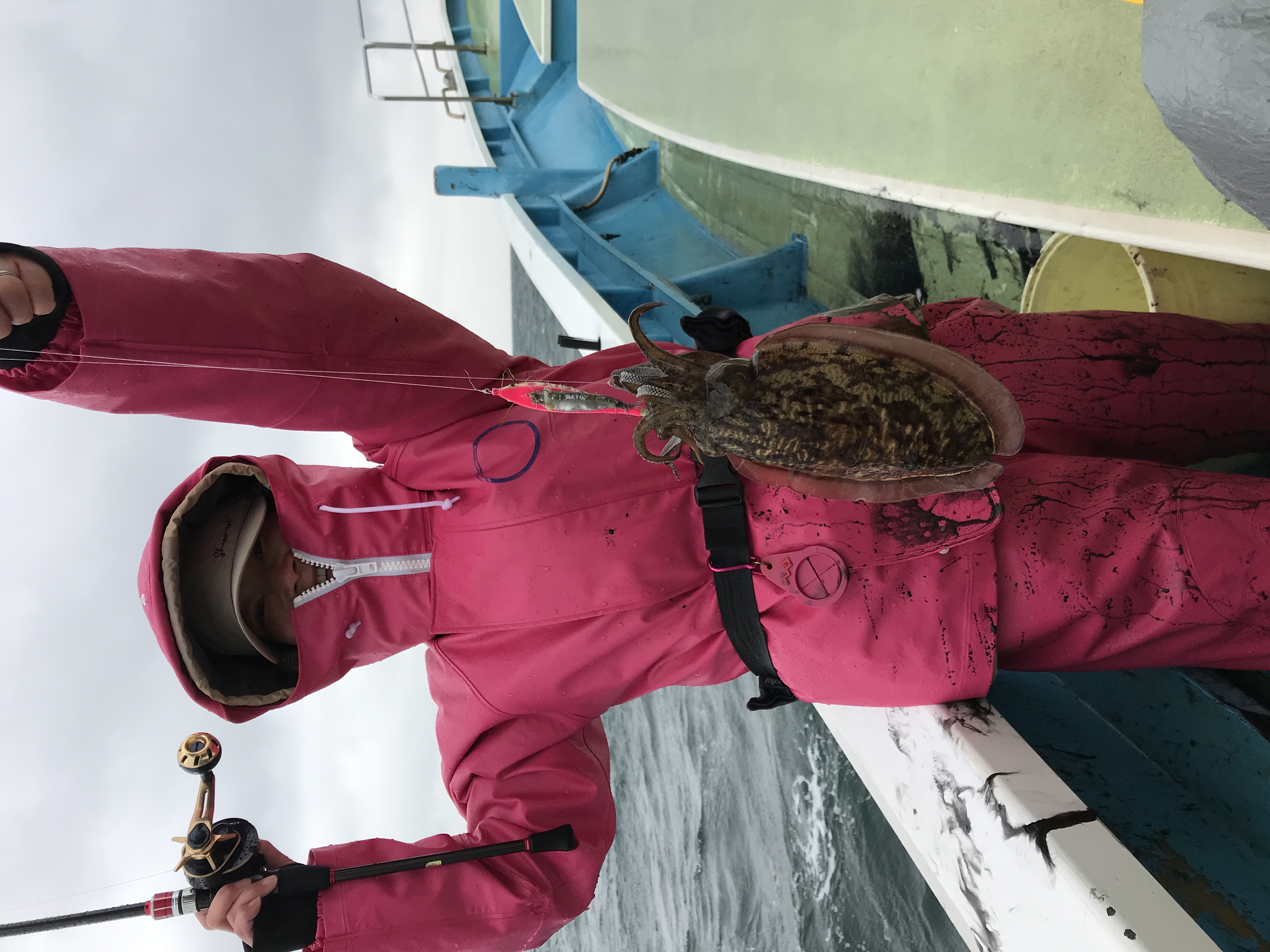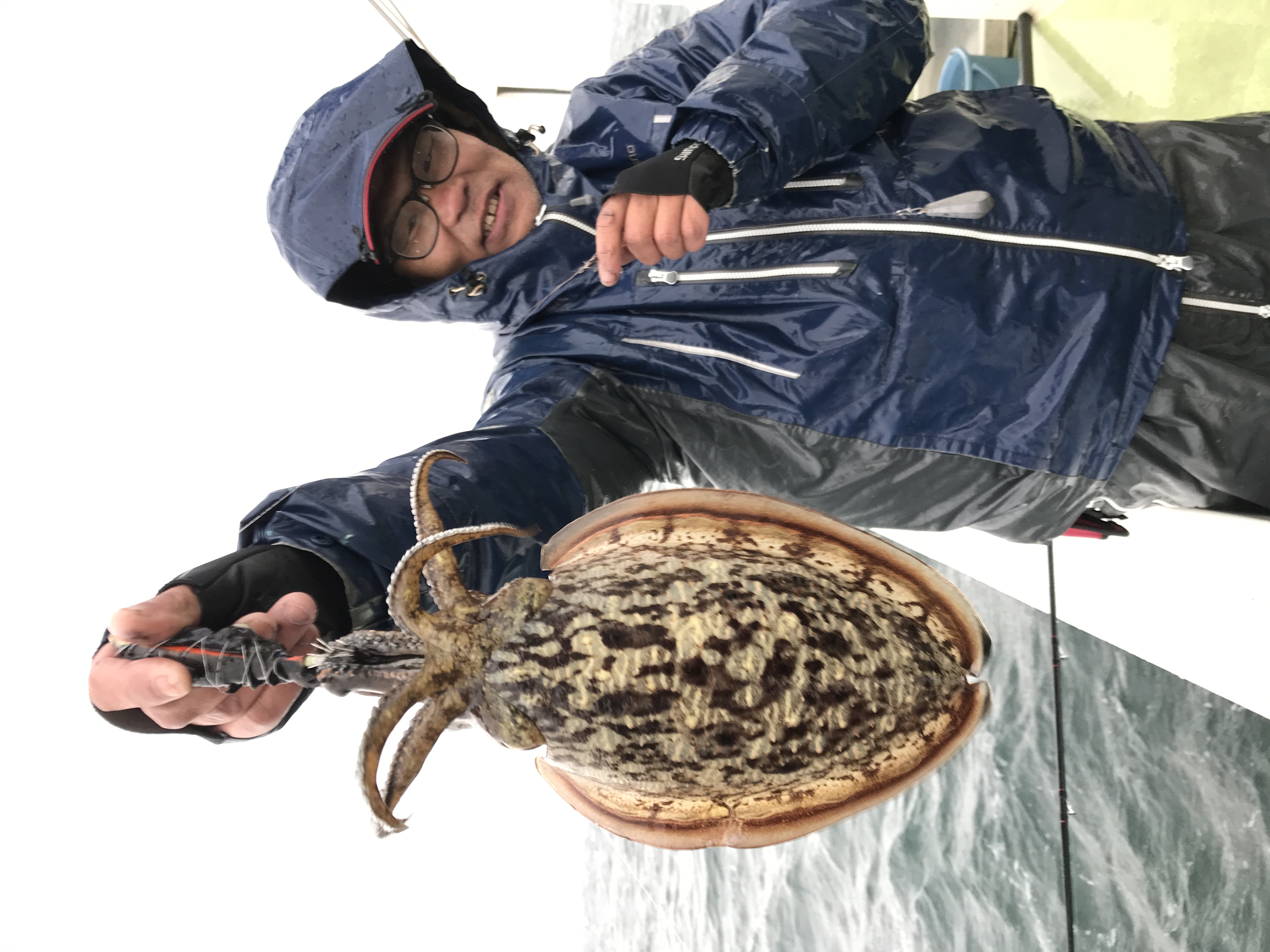 時化で海ぐちゃぐちゃの中がんばって行ってきました。さすがに悪条件だったのでアタリは少なく苦戦。エギチームは特に厳しかったようでエギ師匠の2杯キャッチ以外はシリヤケイカとワニゴチだけ...スッテチームもなかなか難しく船もグラグラ揺れてバラシも有り、それでもなんとかたま~に型は見れました。スミイカ初挑戦の女性もキャッチできました♪ 風強くて舵が離せずキャッチできたけど写真撮りに行けなかった方もお二人、ゴメンナサイ~